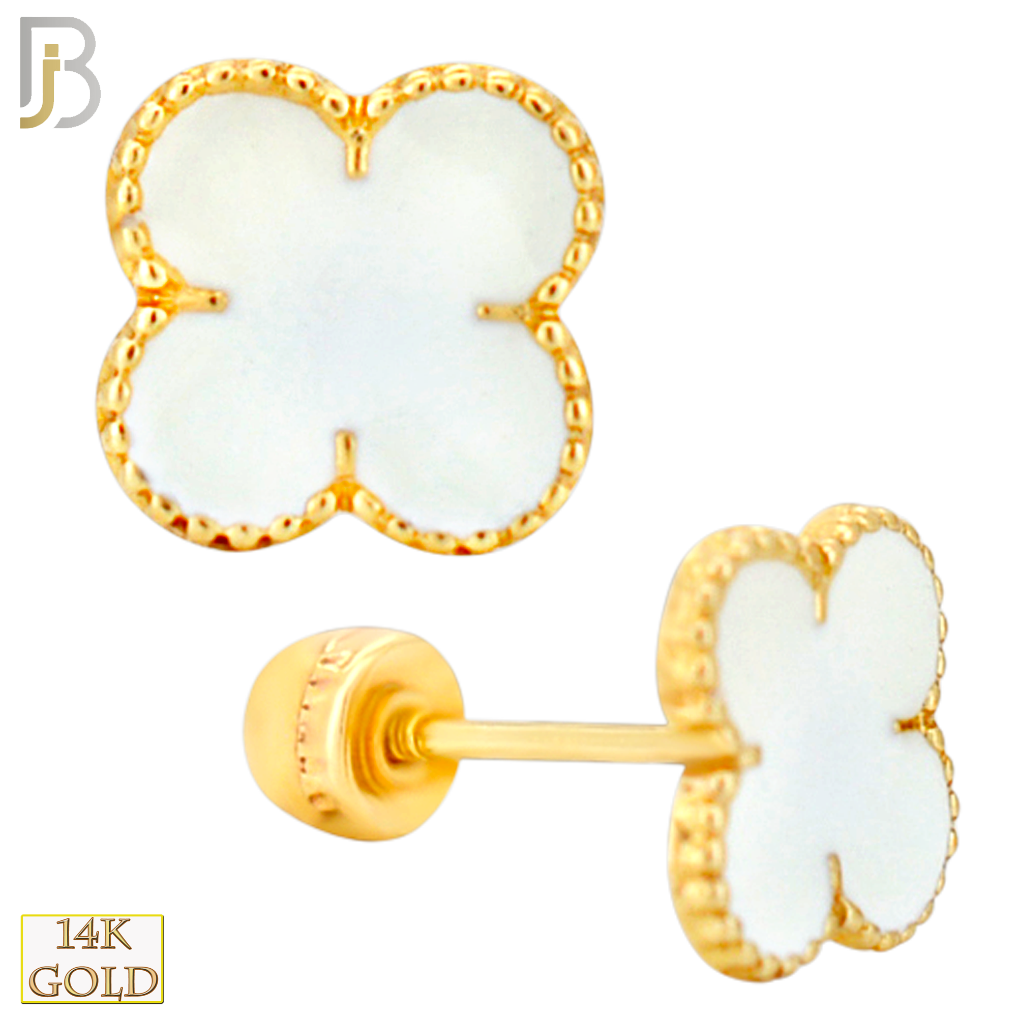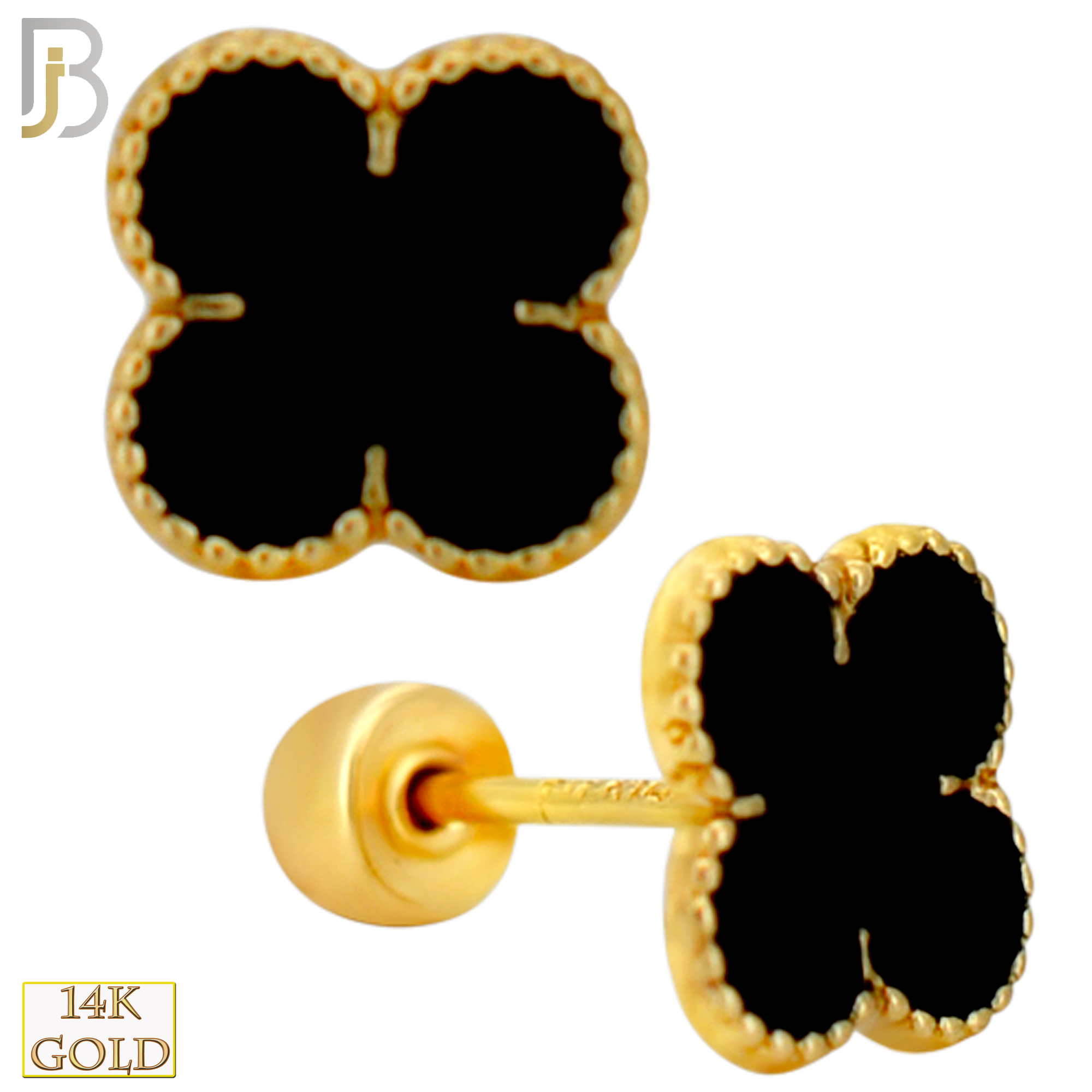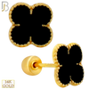 - 14-ES247 - 14k Yellow Gold Black Enamel Four Leaf Clover Earrings with Screw Backing