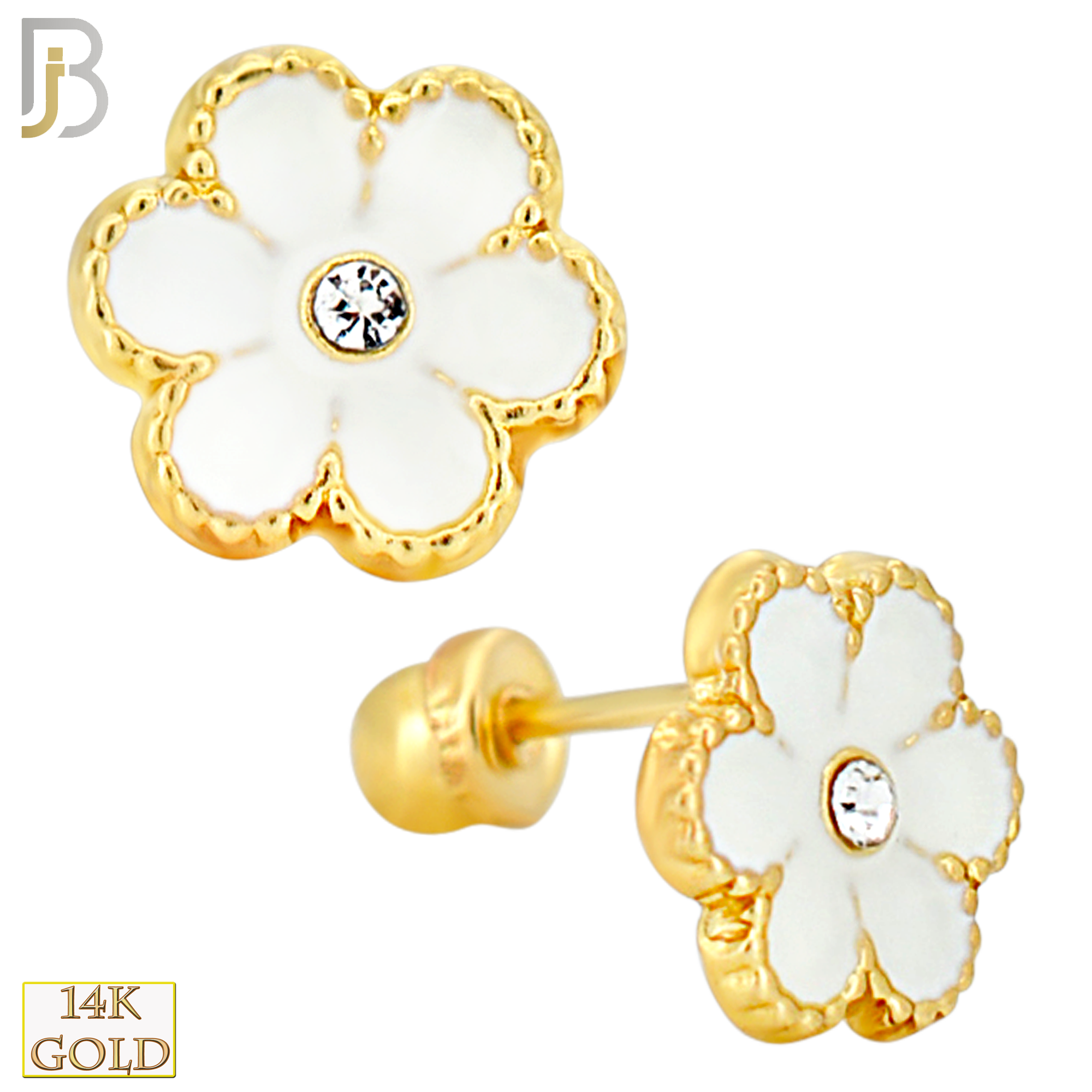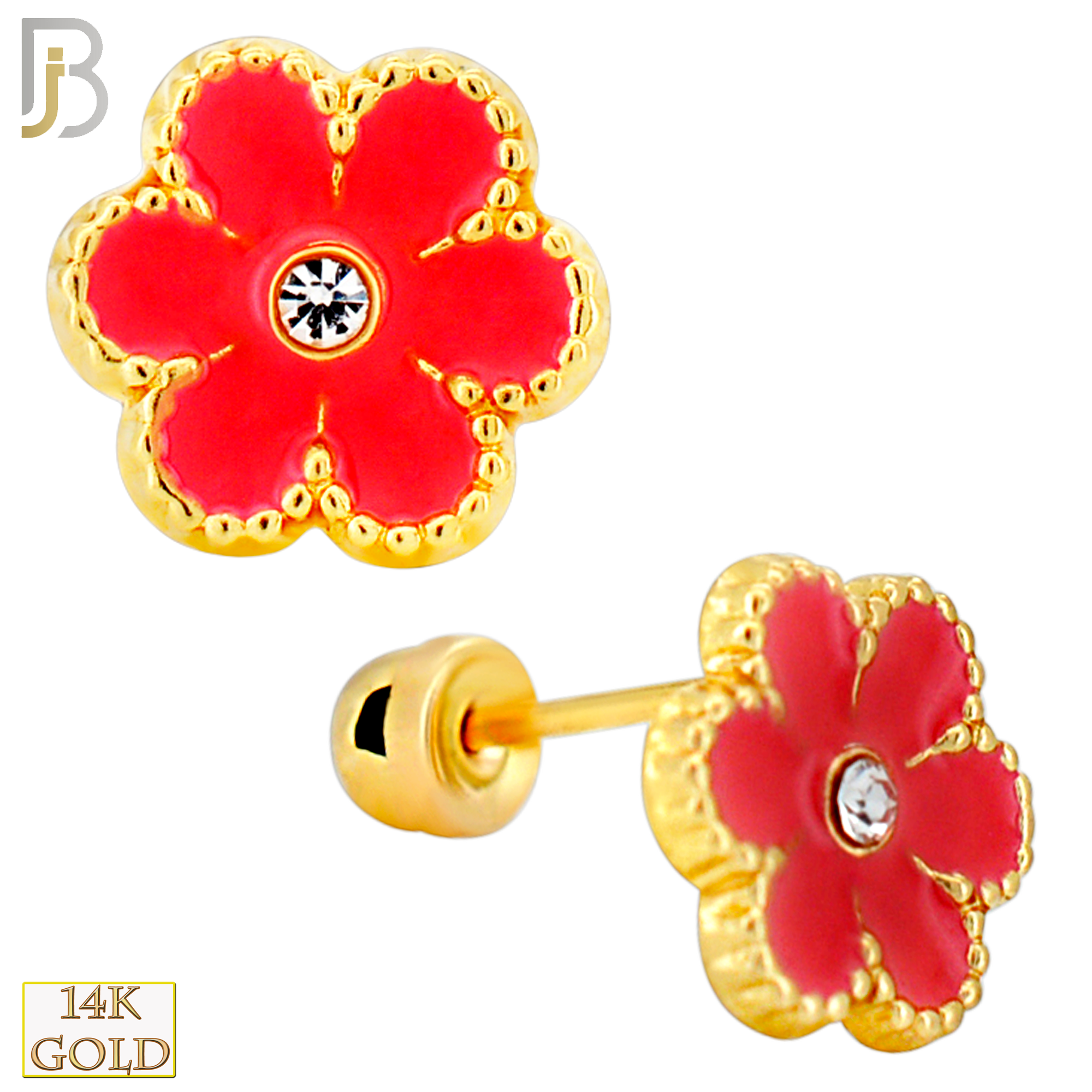 - 14-ES252 - 14k Yellow Gold Enamel Flower Earrings with Screw Backing