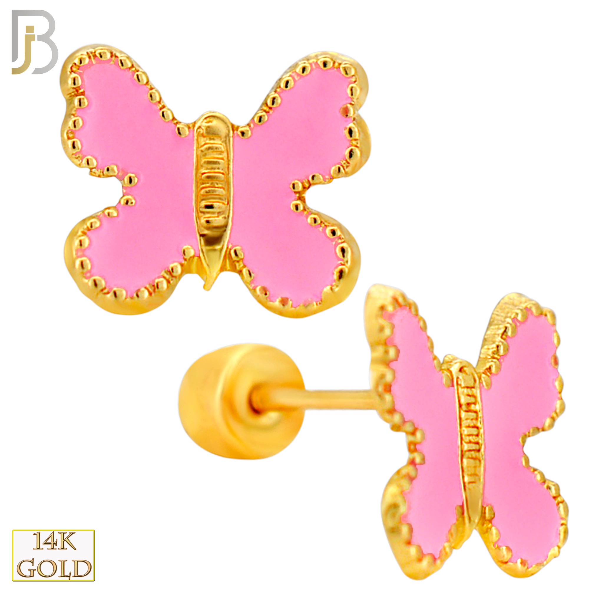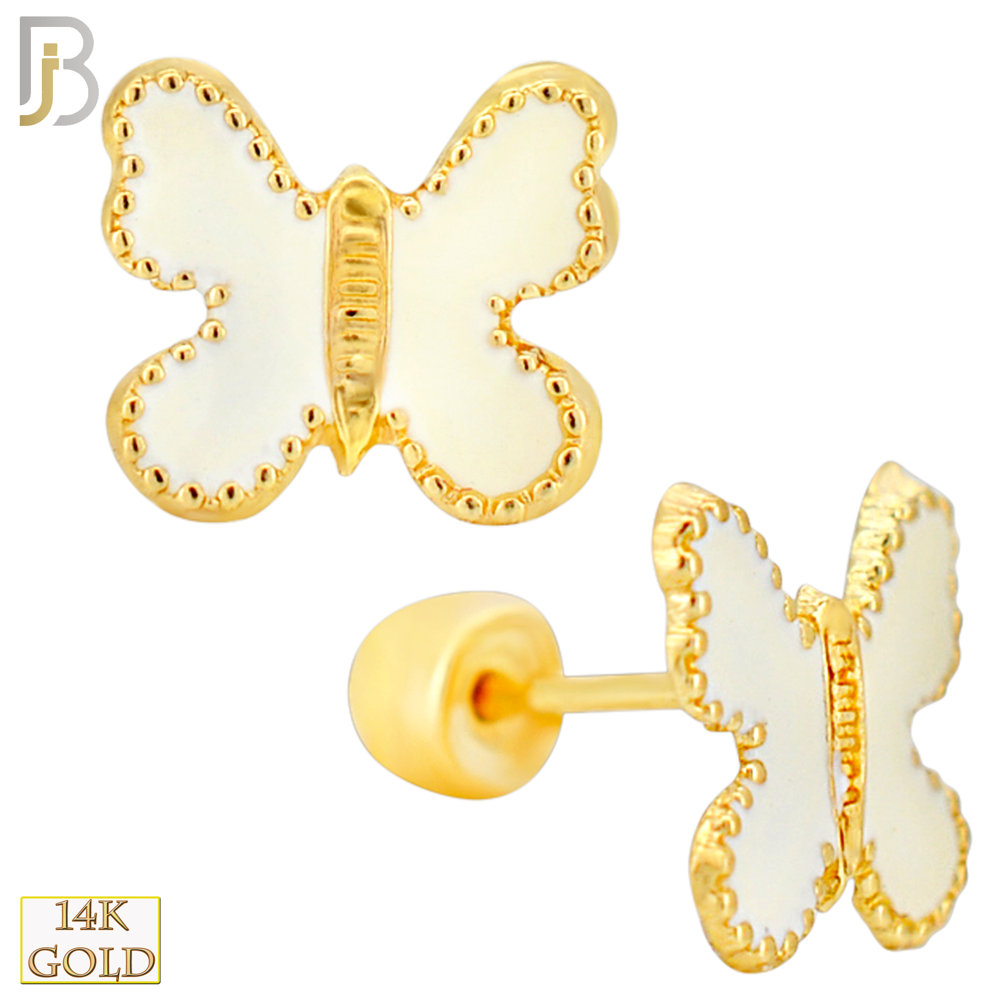 - 14-ES253 - 14k Yellow Gold Enamel Butterfly Earrings with Screw Backing