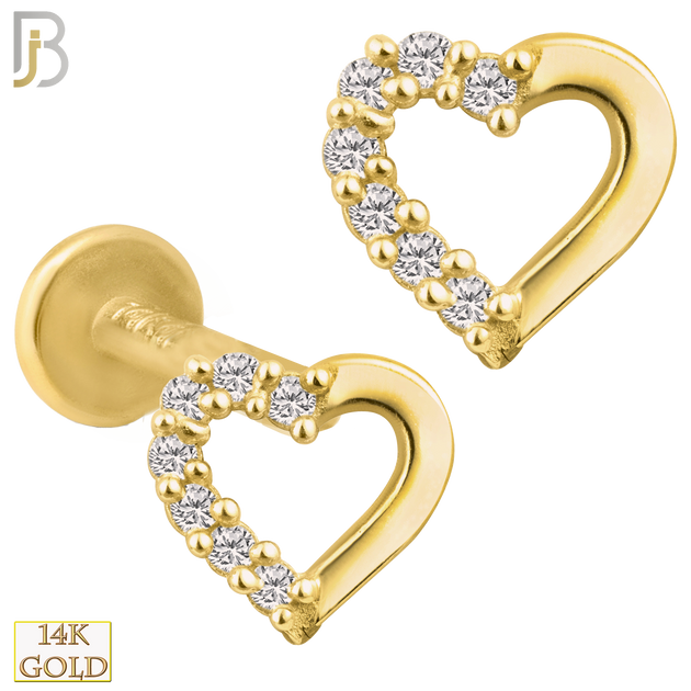 14-LB139 - 14k Yellow Gold Heart with Half Part Cubic Zirconia Labret