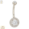 14k Solid Gold Banana Belly Ring with Round CZ Design