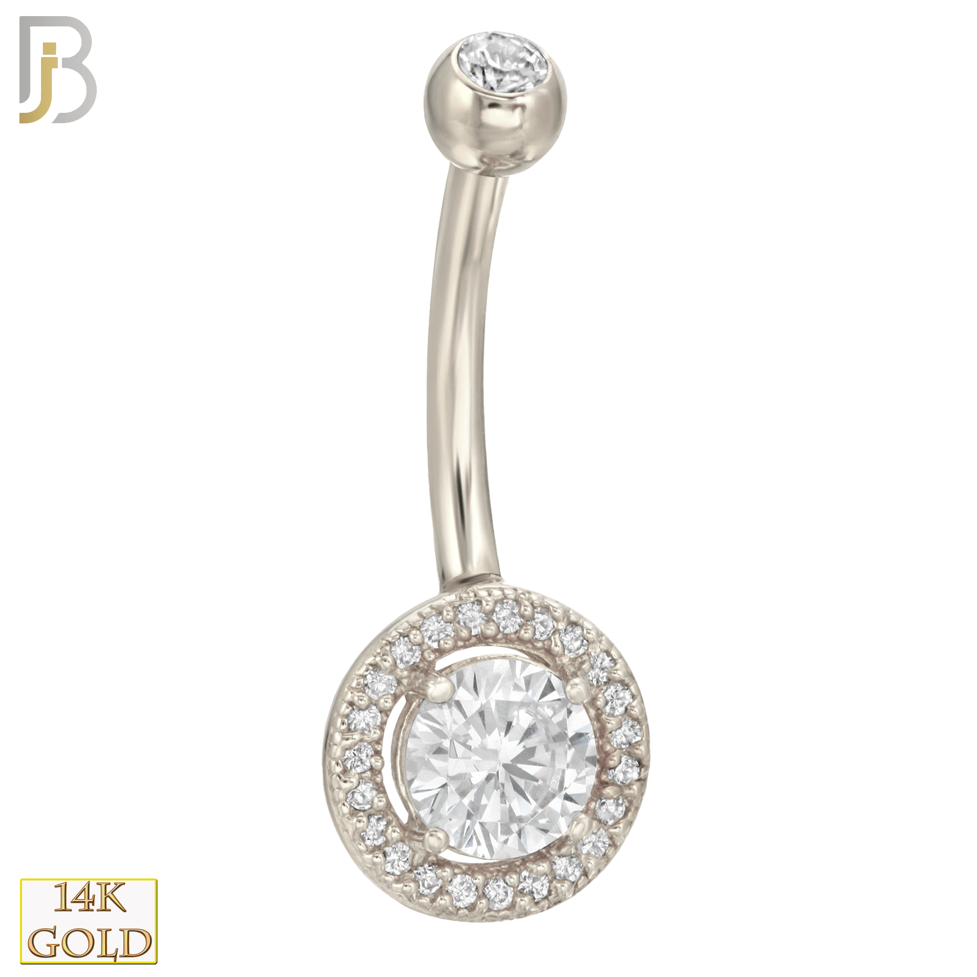 14-NB11 - 14k Solid Gold Banana Belly Ring with Round CZ Design