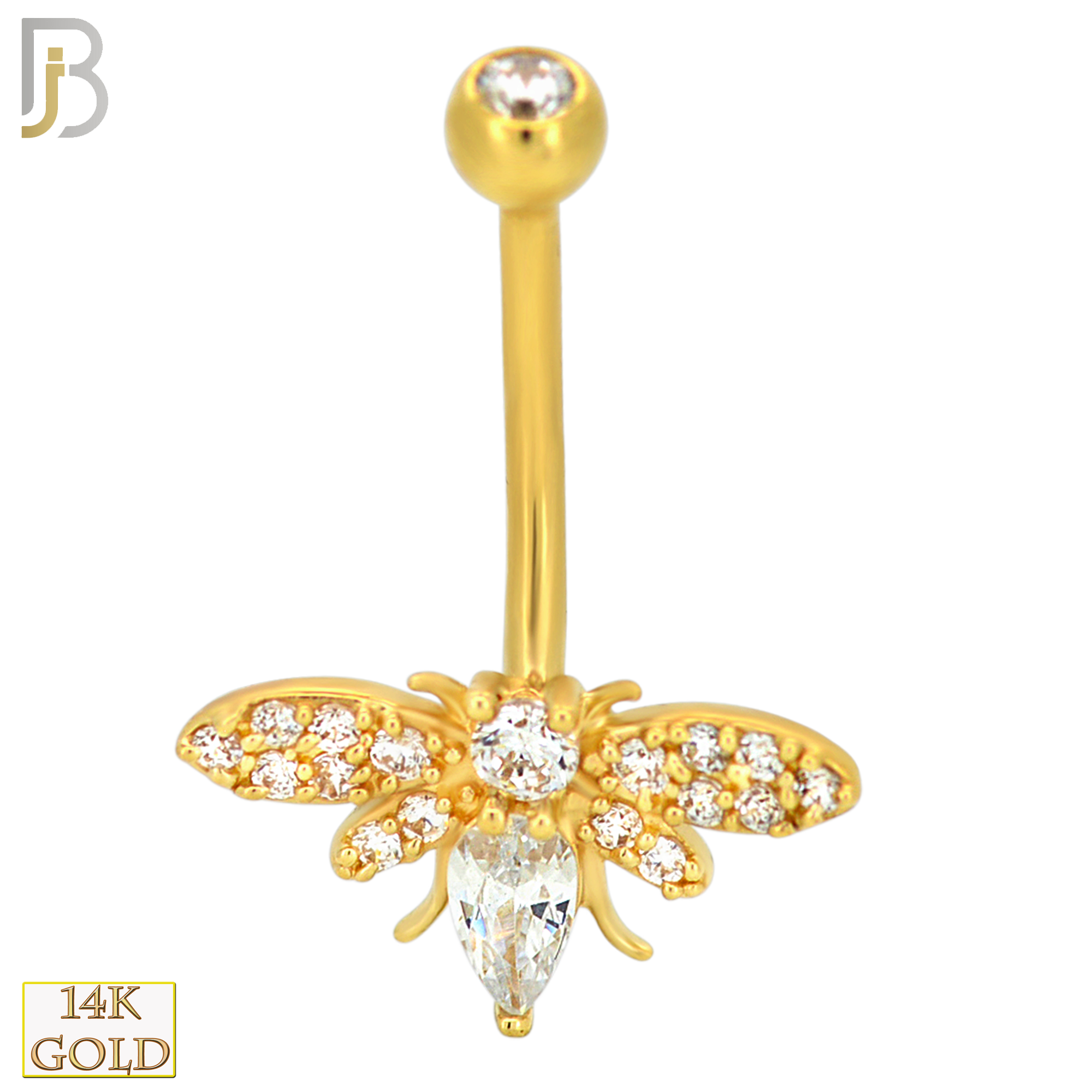 14-NB30 - 14k Solid Gold Bee with Multi CZ Belly Ring