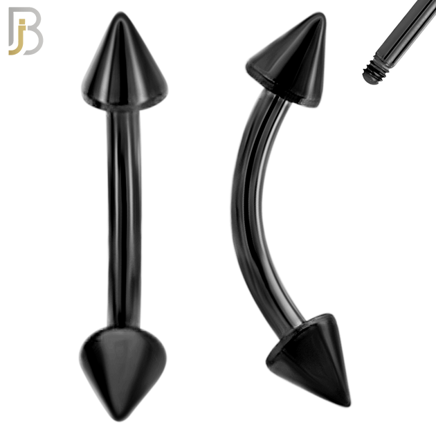 EC02K - 14g Thickness 316L Surgical Steel Black Plated Curved Barbell Plain Screw Spike (PACK OF 6)