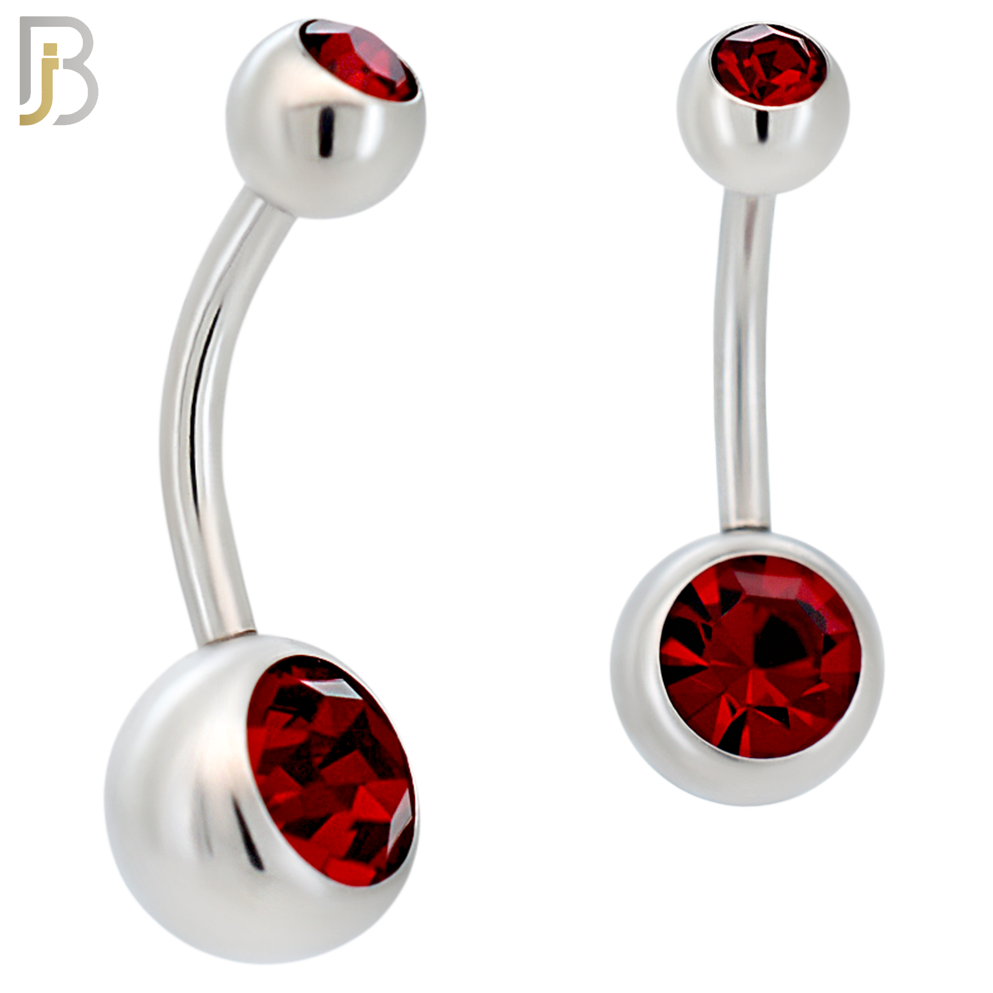 - NB01SDR - 316L Stainless Steel Ruby Double Gem Bezel Zircon Plain Banana Belly Navel Ring (Pack of 6)