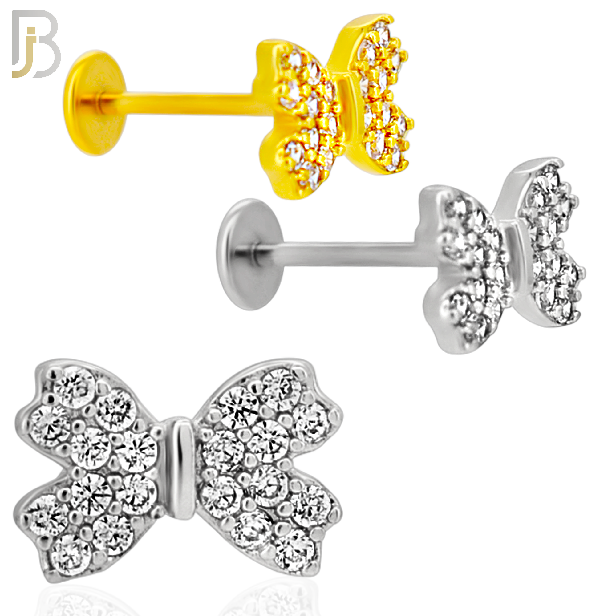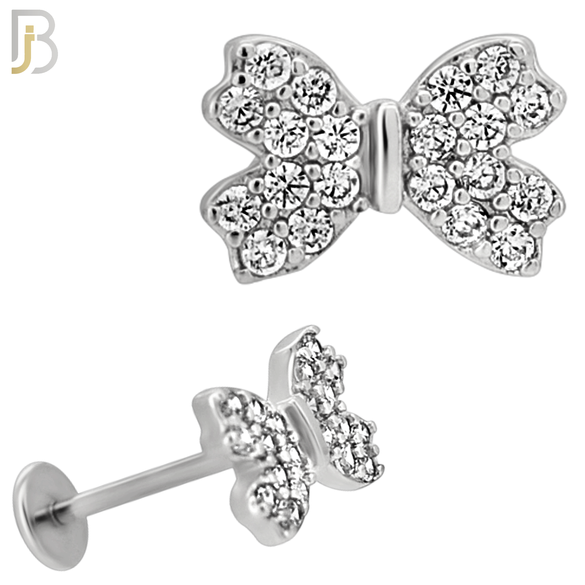 - LB34 - 18g - 316L Surgical Steel Cubic Zirconia Studded Ribbon Flat Back Labret