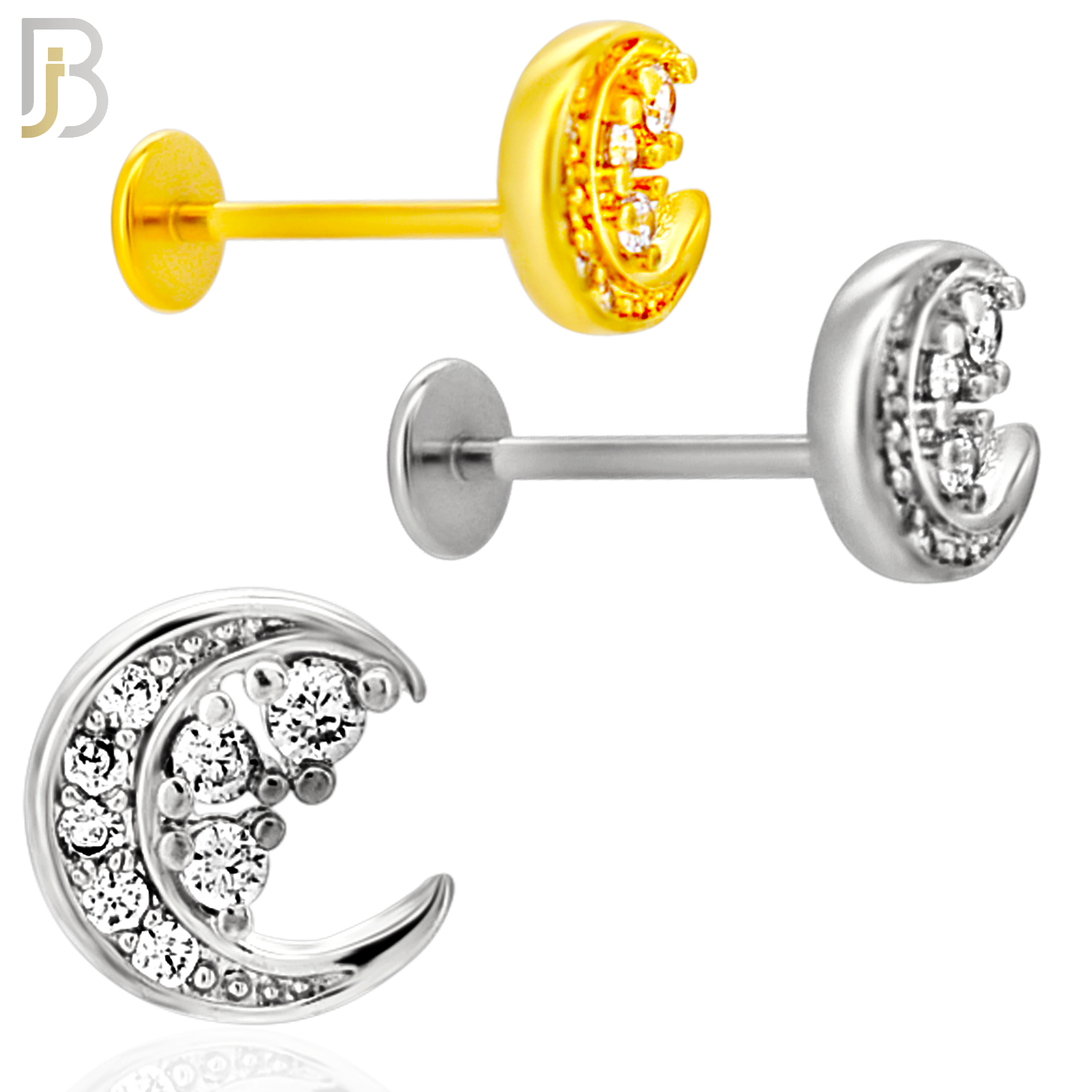 - LB42 - 18g - 316L Surgical Steel Moon Flat Back Labret