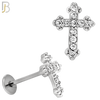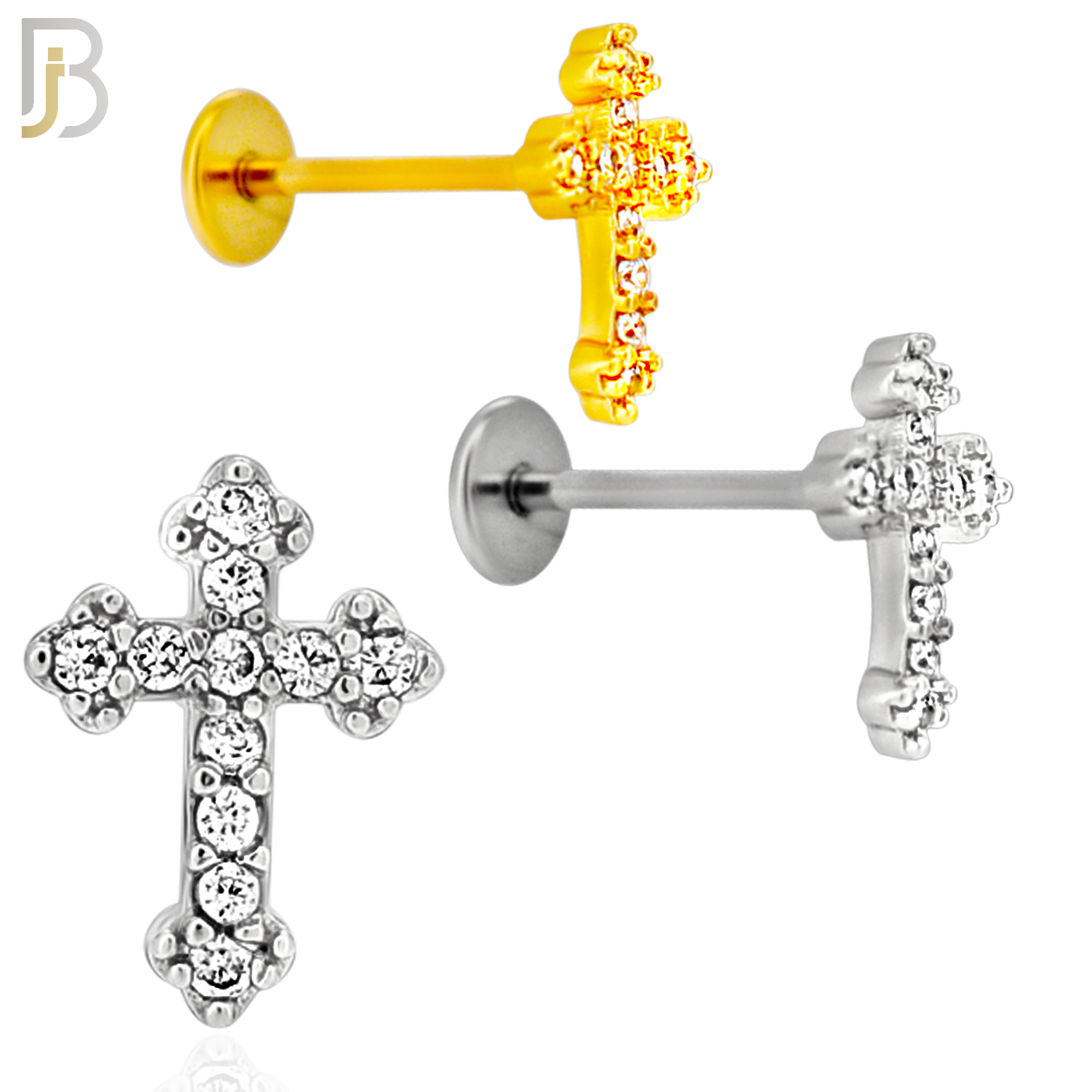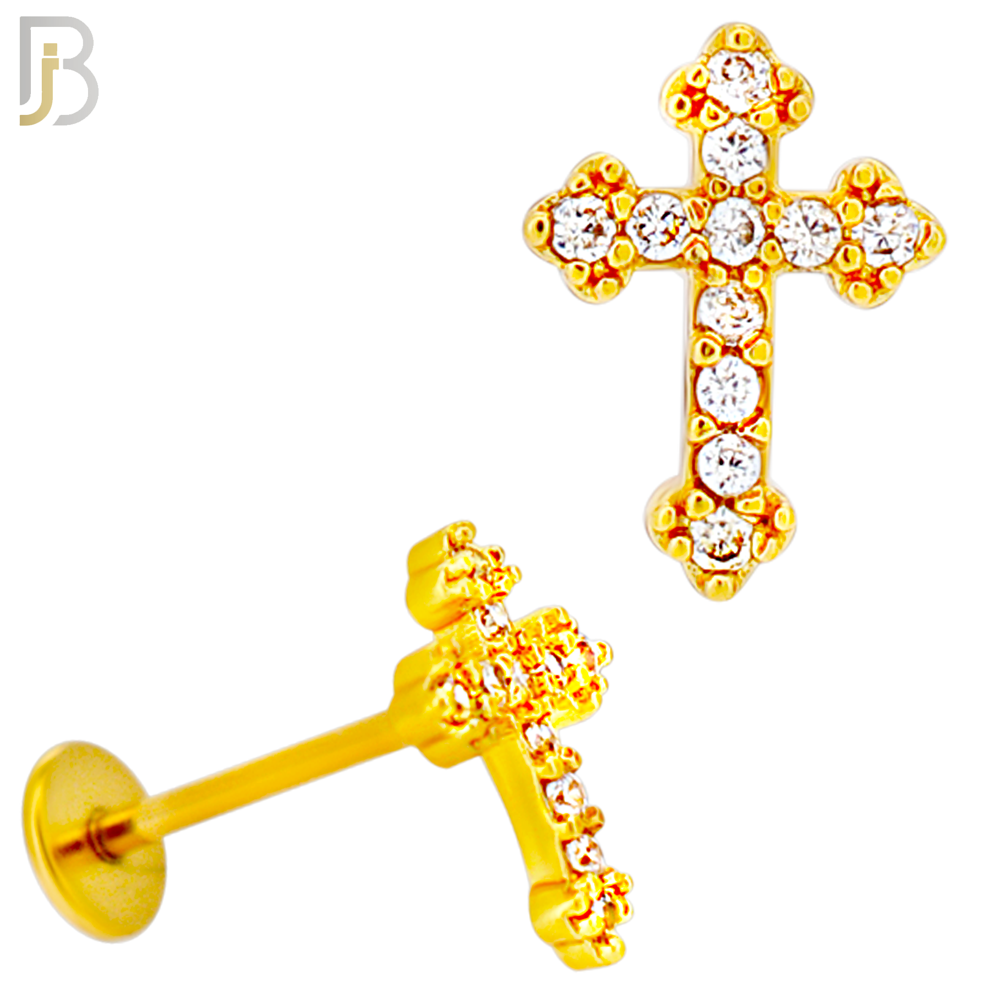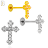 - LB45 - 18g - 316L Surgical Steel Budded Cross Flat Back Labret