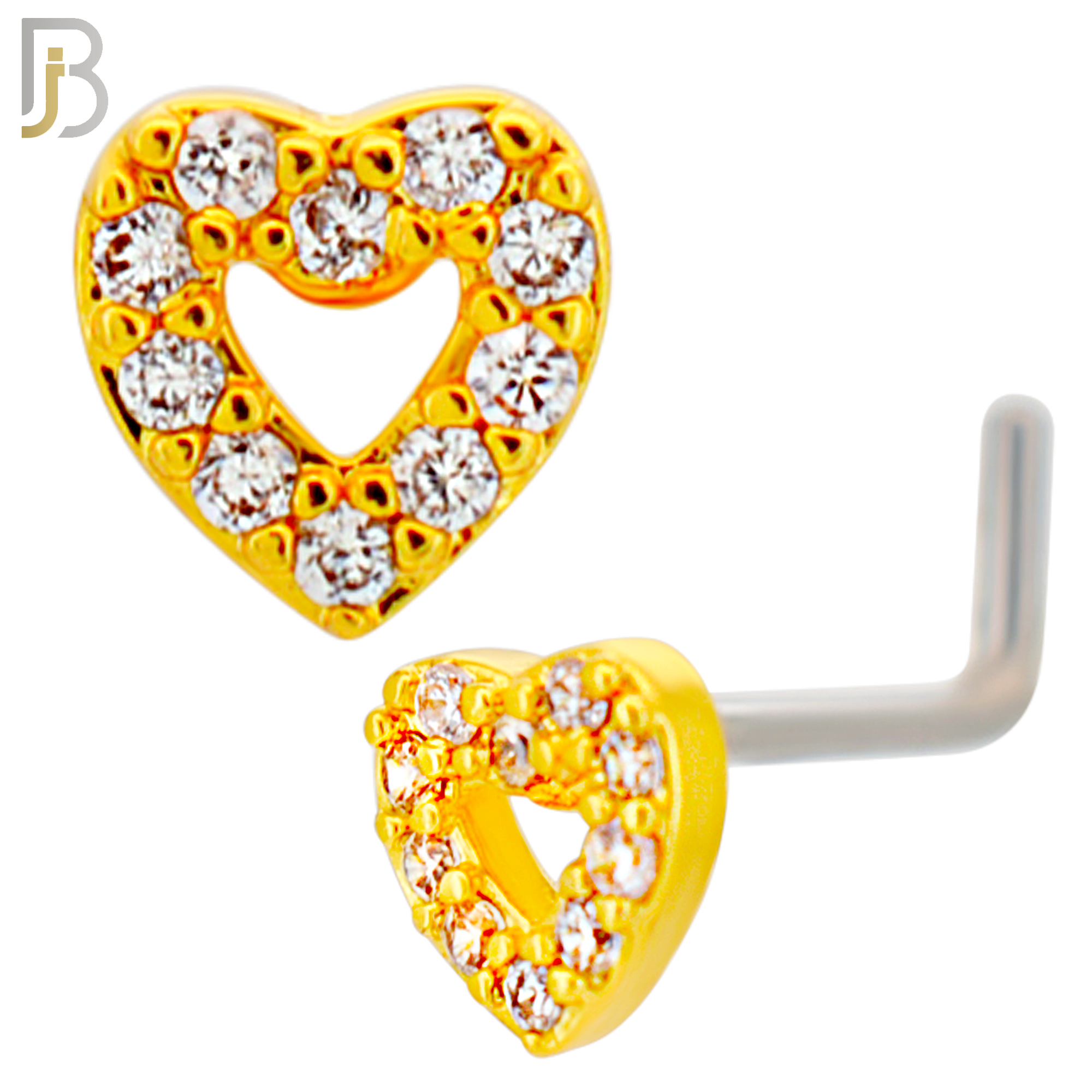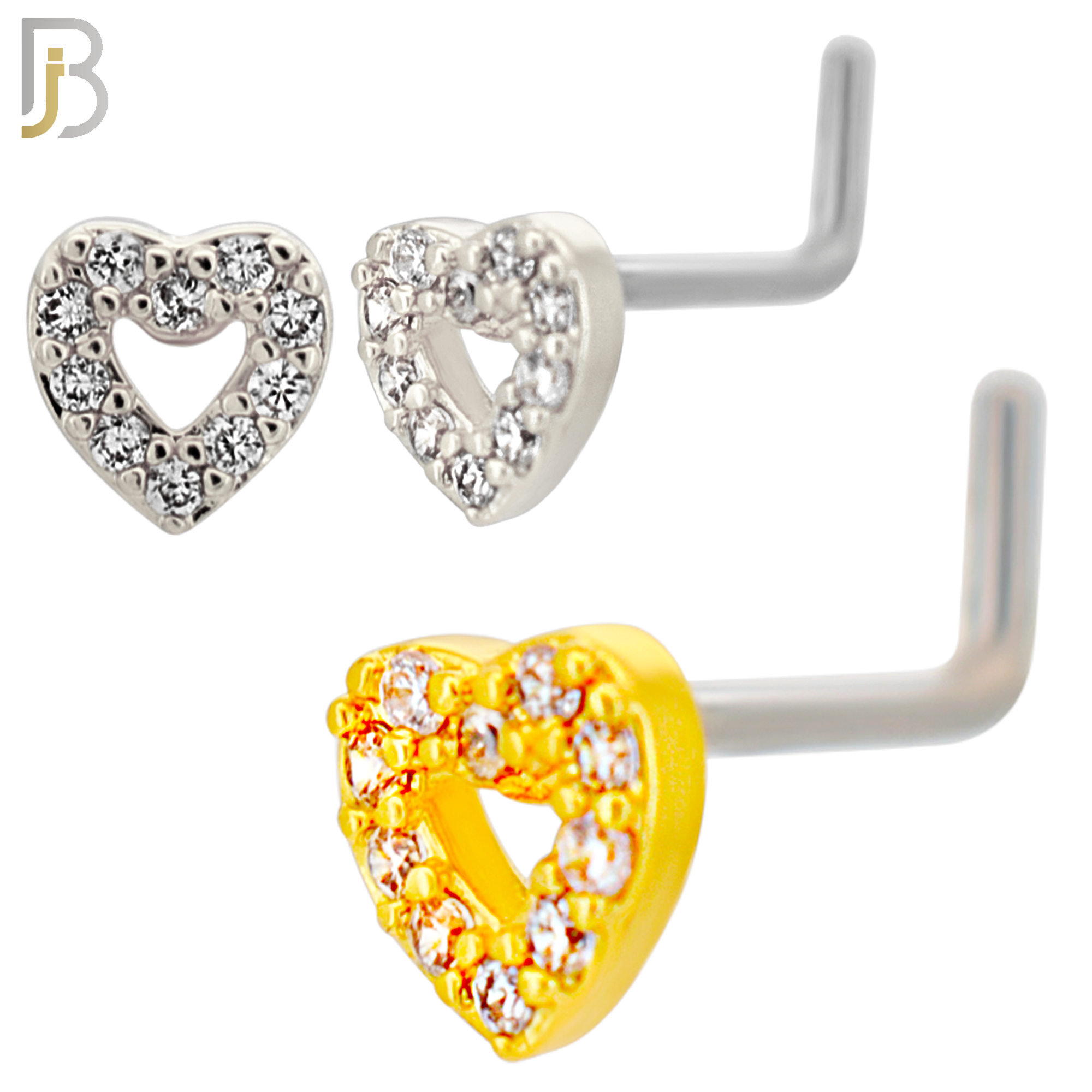 - NR126L -20g - 316L Surgical Steel Lshaped Nose Rings Heart with Cubic Zirconia