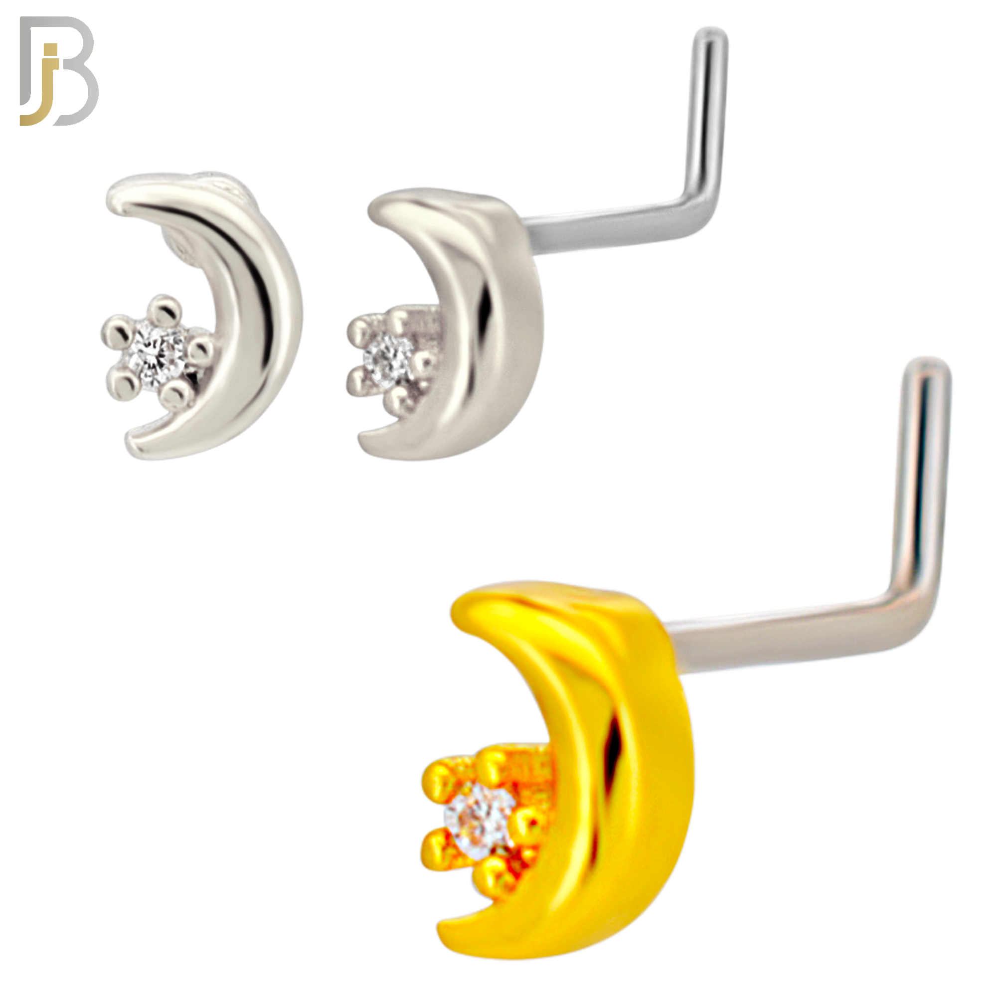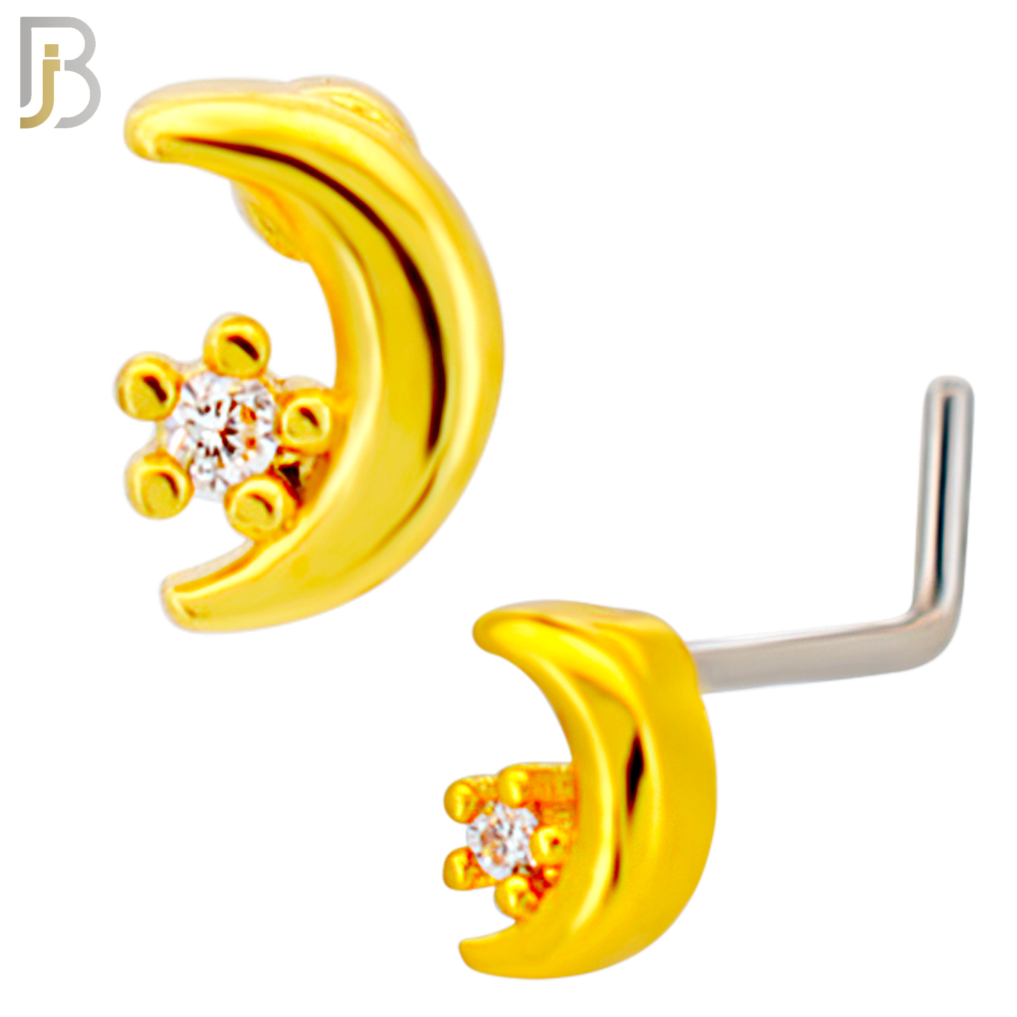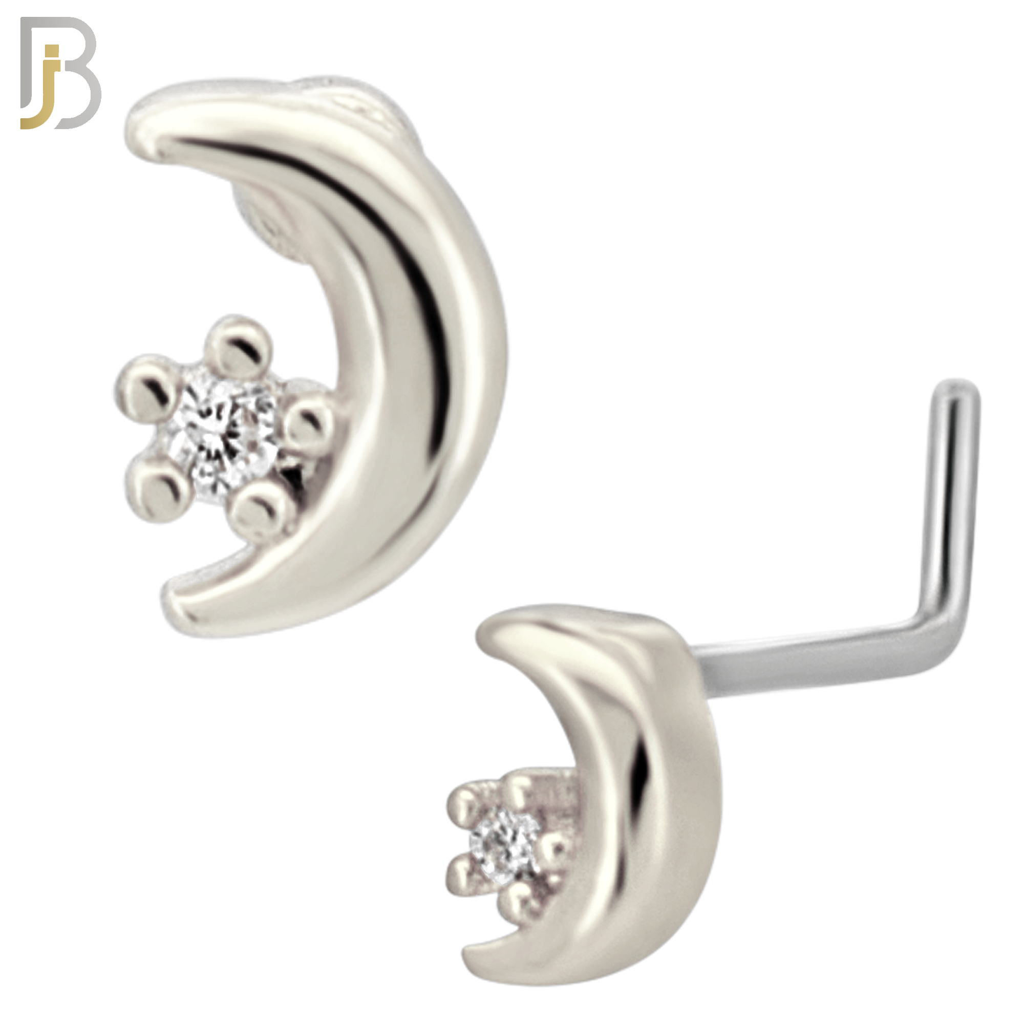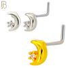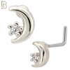 - NR130L - 20g - 316L Surgical Steel L-shaped Nose Rings Crescent Moon with Star with Cubic Zirconia