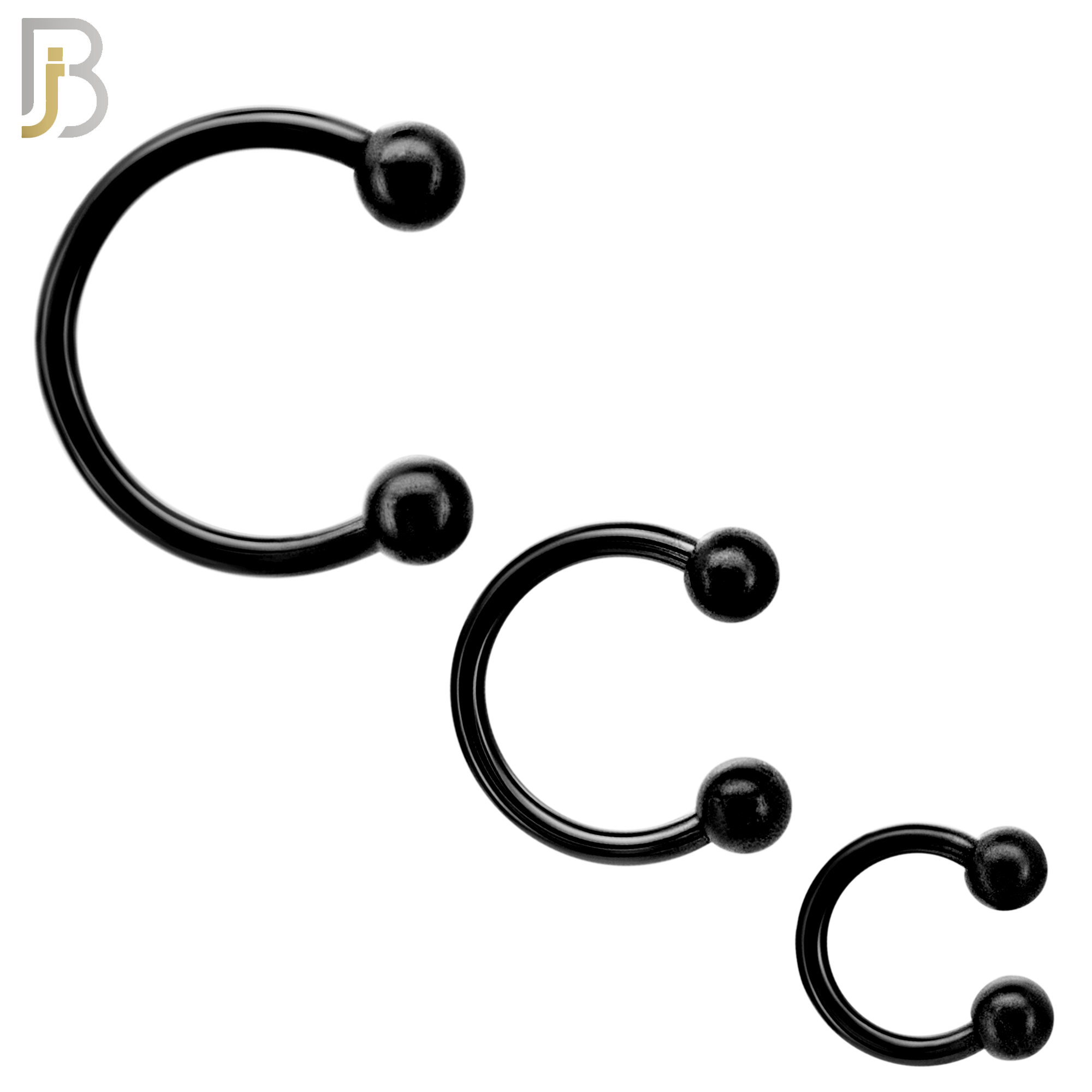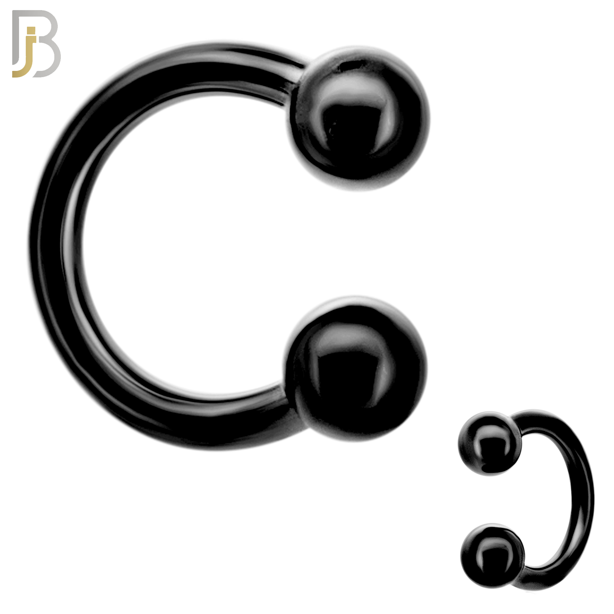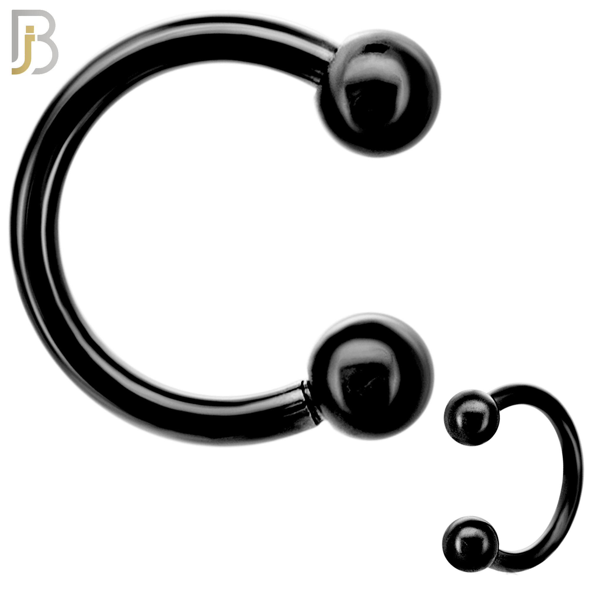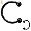316L Surgical Steel Black PVD-Plated Horseshoe Circular Barbell with Screw Ball Ends (Pair) Externally Threaded