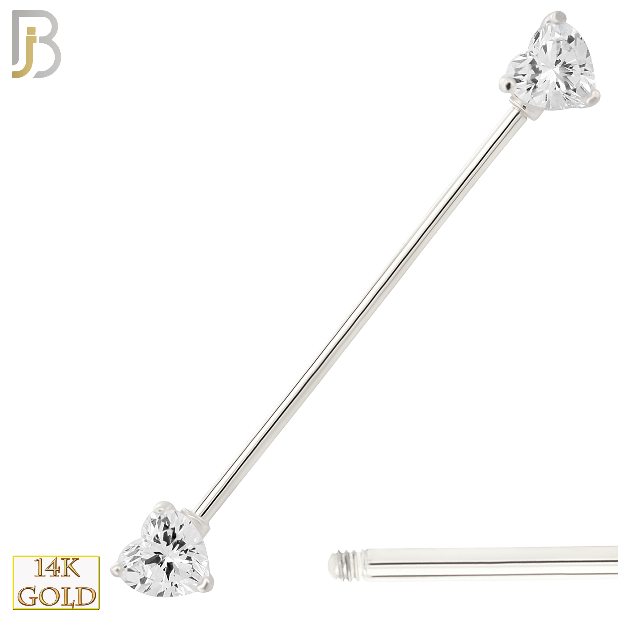 14k Solid Gold Industrial Barbell with Heart Shaped CZ