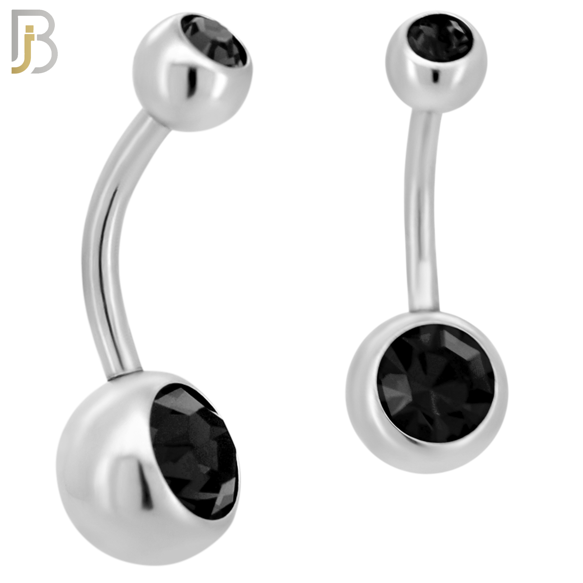 Jet Double Gem Bezel Zircon Banana Belly Ring – 316L Surgical Steel