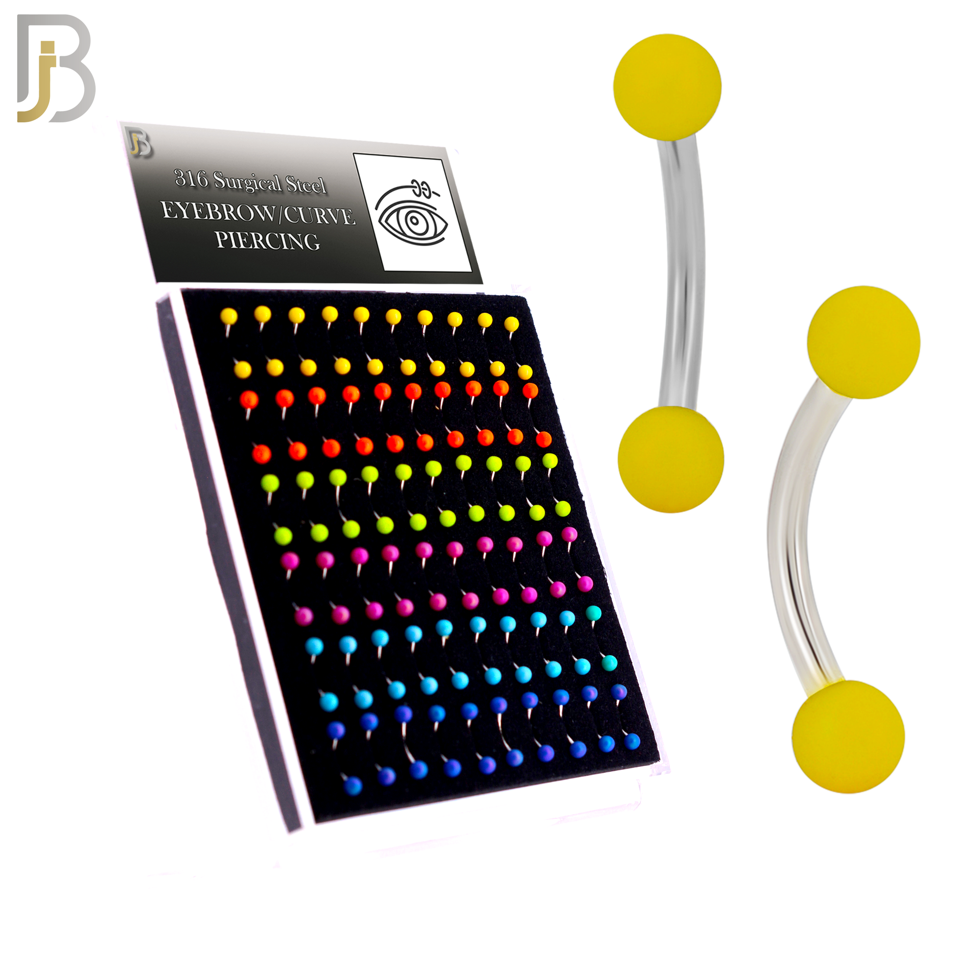 Simple, stylish, and reliable—these curved barbells with solid acrylic ball ends are a must-have for any piercing collection. Crafted from 316L surgical steel, they are hypoallergenic, durable, and safe for sensitive skin. Perfectly sized at 16g thickness and 8mm wearable length, these barbells are designed for eyebrow piercings, offering everyday comfort with a clean, classic look.