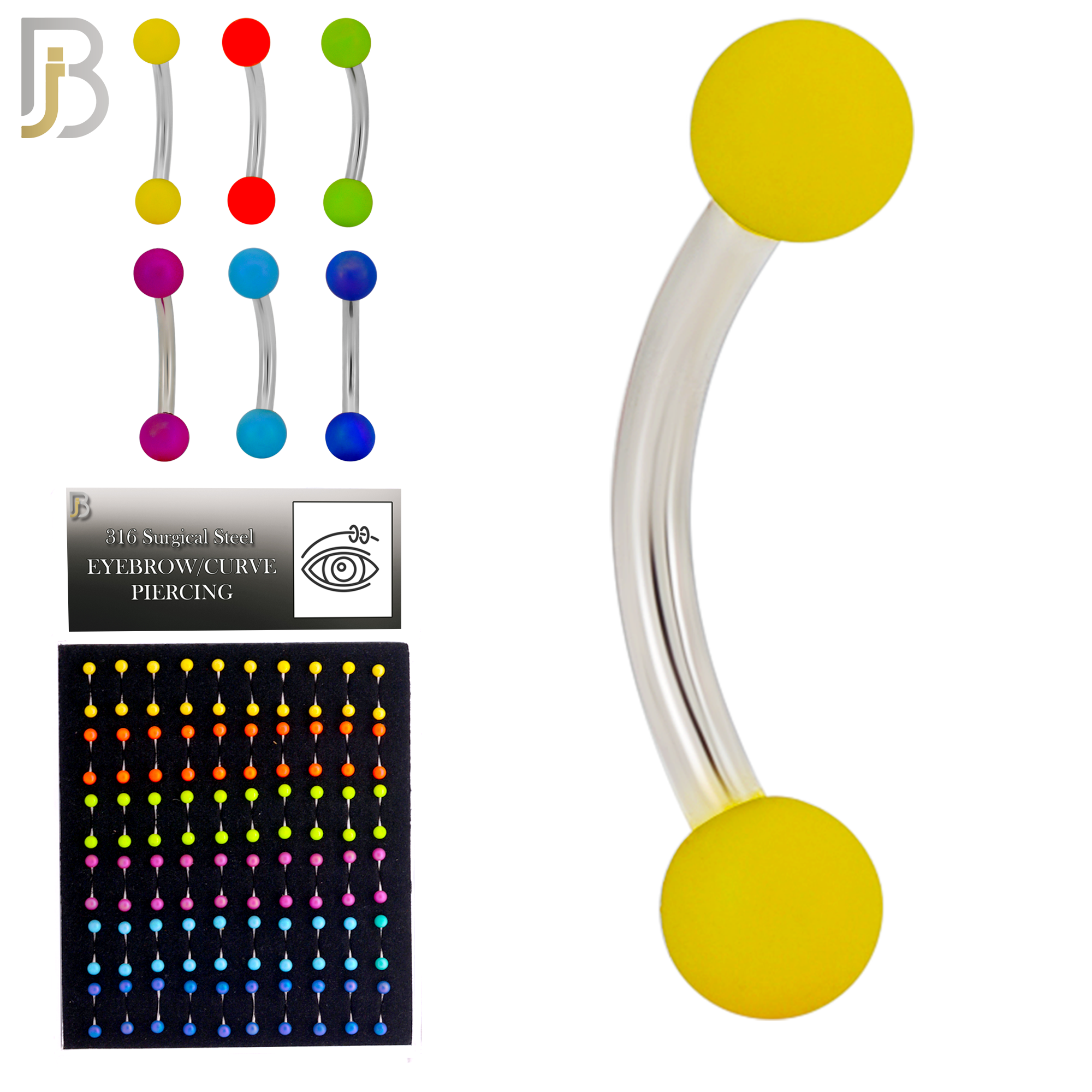 316L Surgical Steel Curved Barbells – External Threaded with Solid Acrylic Ball (16g, 8mm, Eyebrow Piercing, Hypoallergenic)