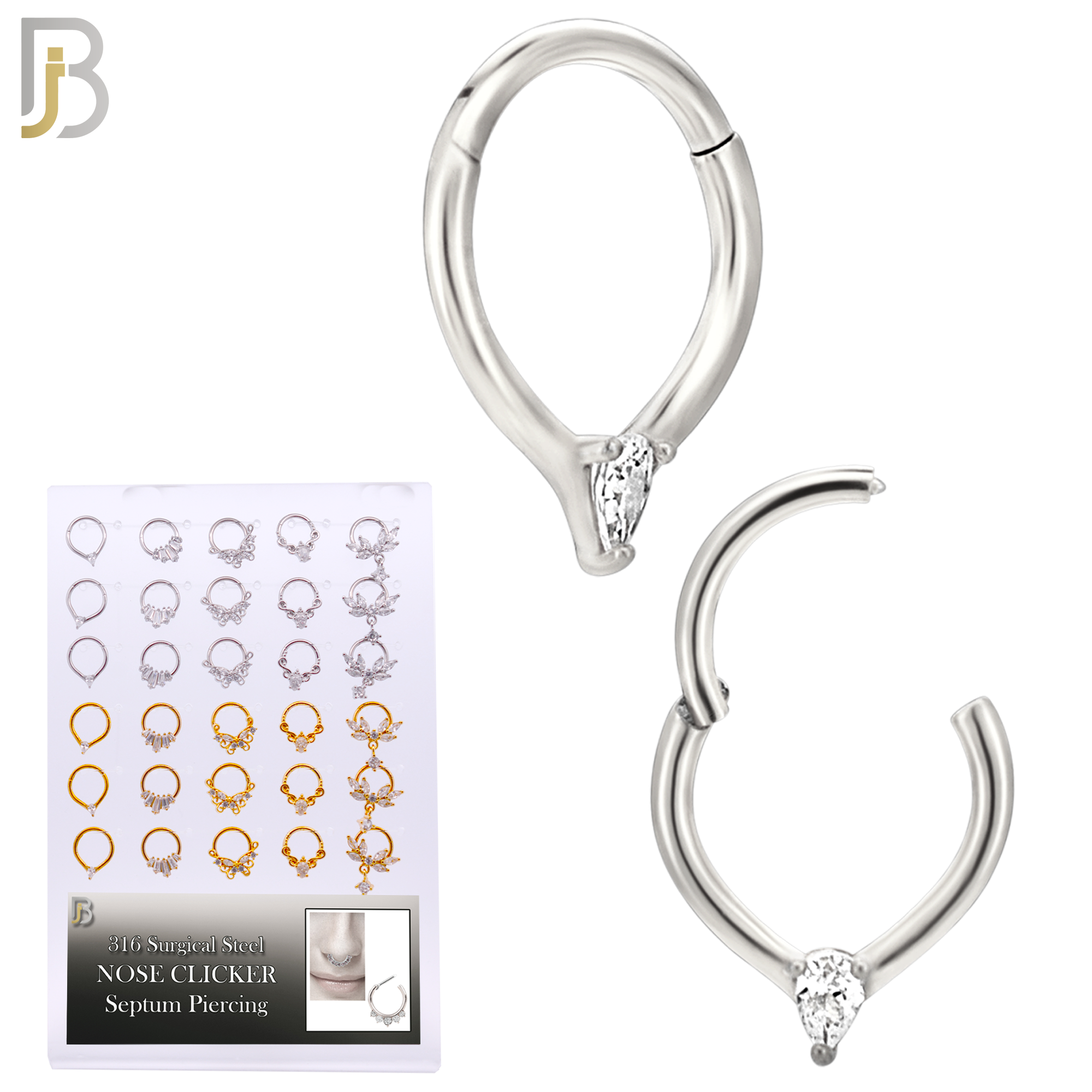 PK-CT0007 - 316 Surgical Steel Five Different Designs Hinged Septum Hoops - Pack of 30 Pieces
