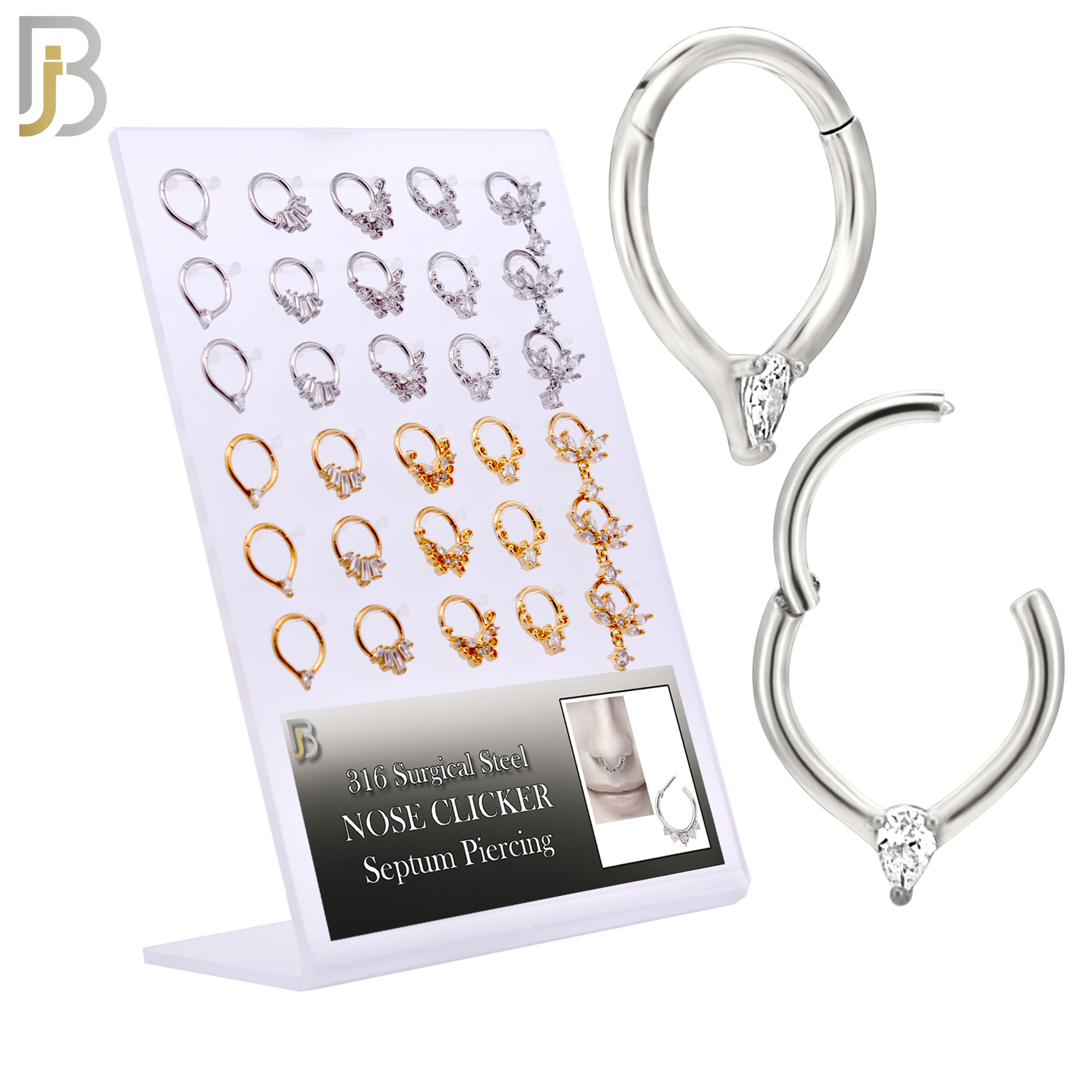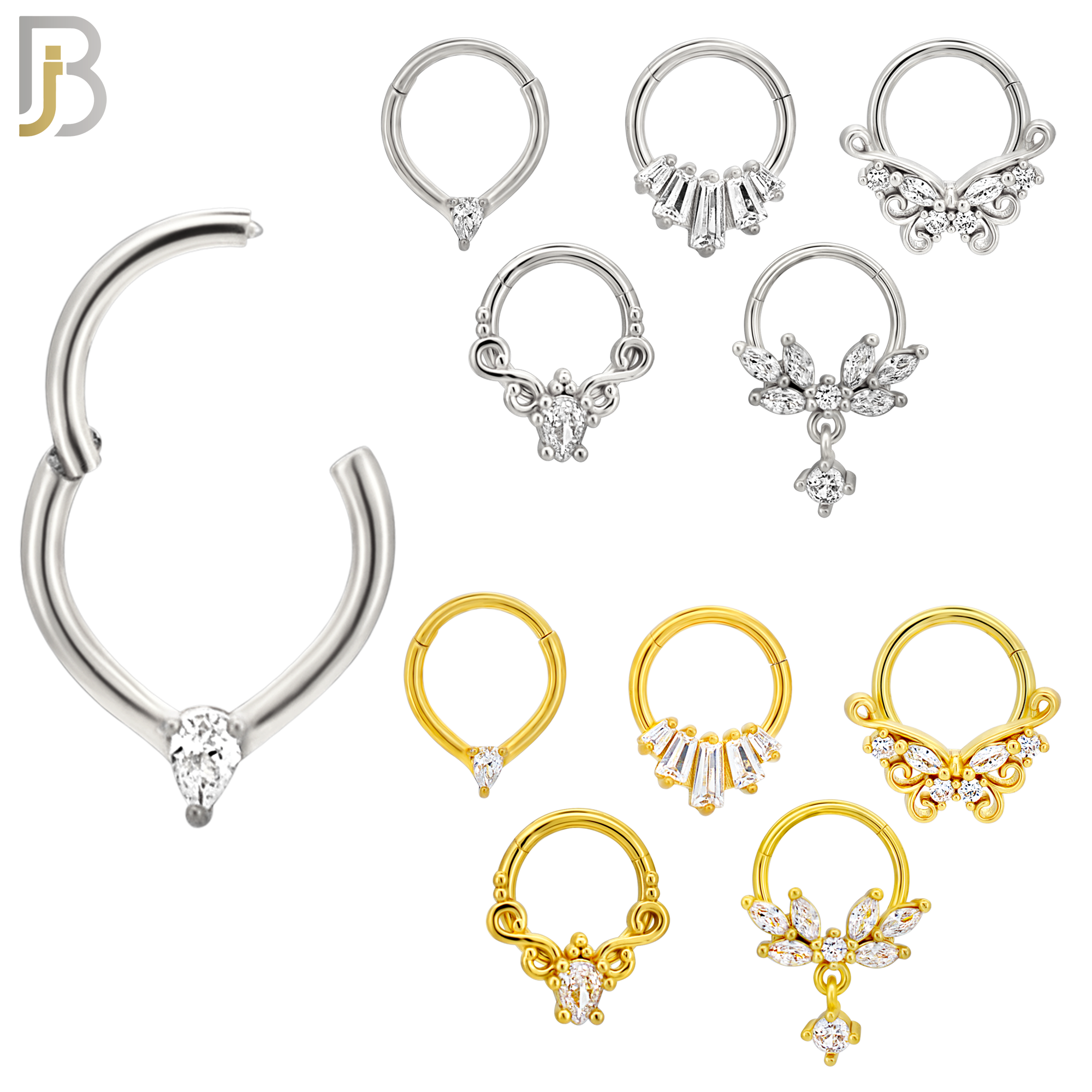 - PK-CT0007 - 316 Surgical Steel Five Different Designs Hinged Septum Hoops - Pack of 30 Pieces