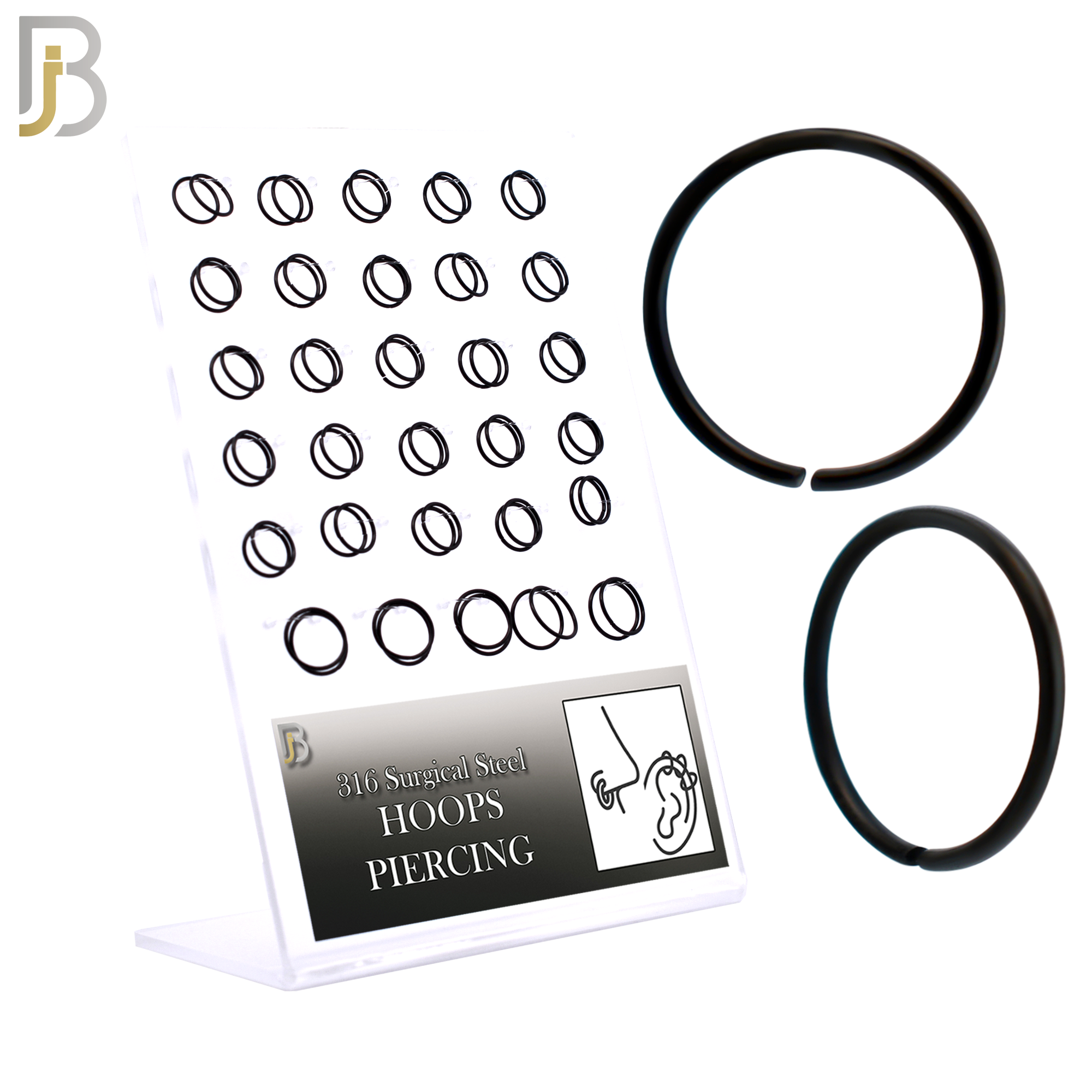 Black Plated 316L Surgical Steel Seamless Hoops – Pack of 60