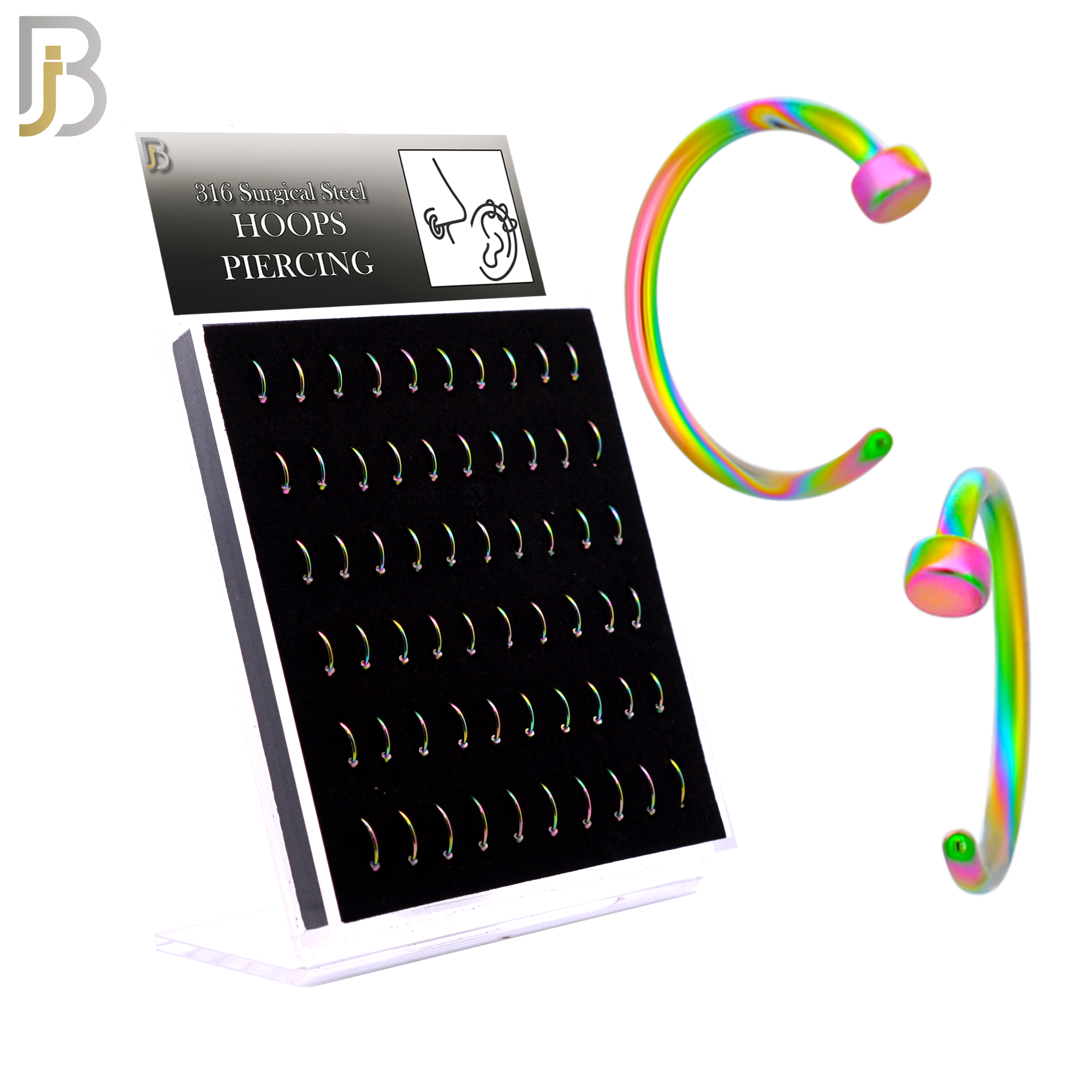 Rainbow Plated 316L Surgical Steel Nose Hoops – Stopper Half Moon Design – 60 Piece Pack