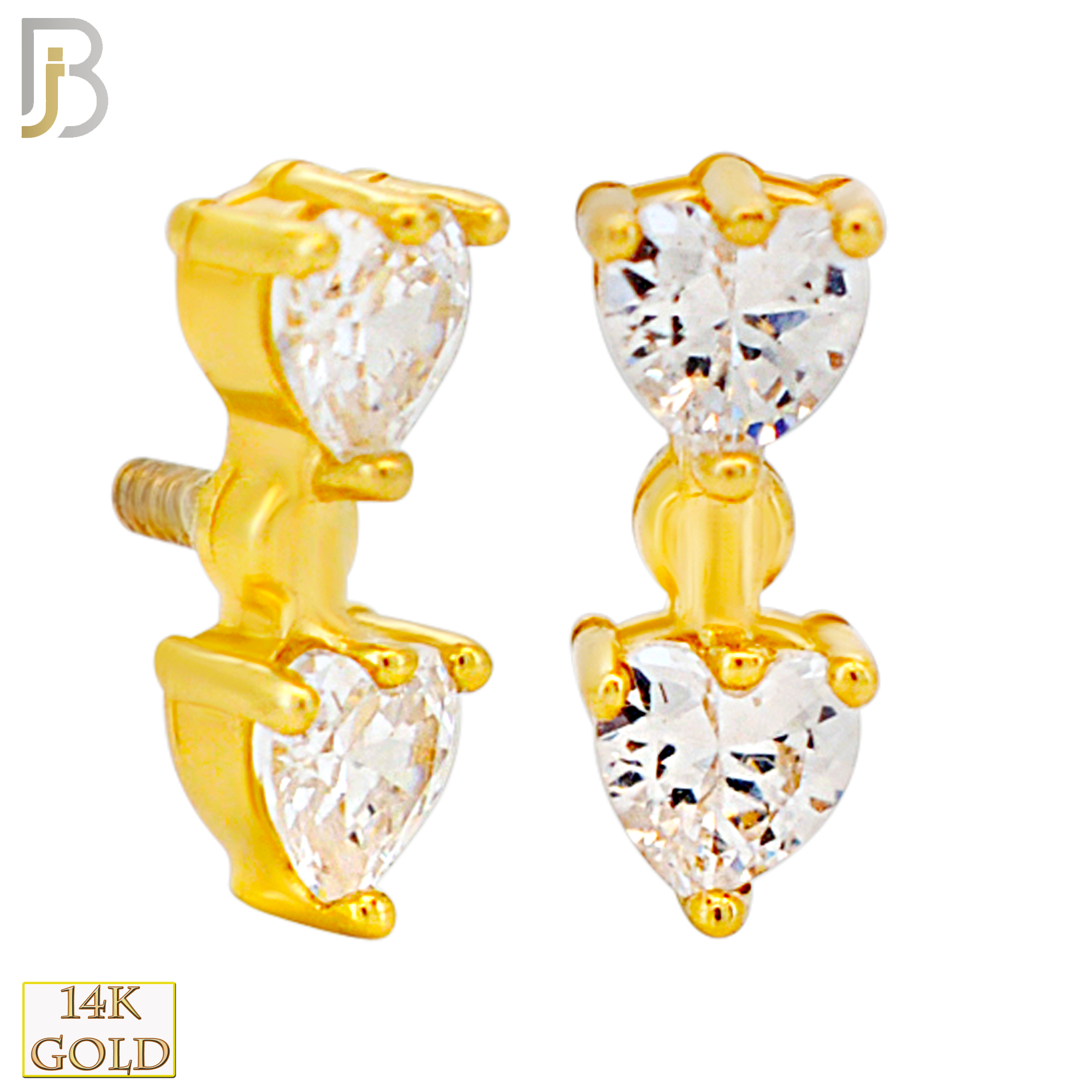 14k Yellow Double Heart Labret with Cubic Zirconia