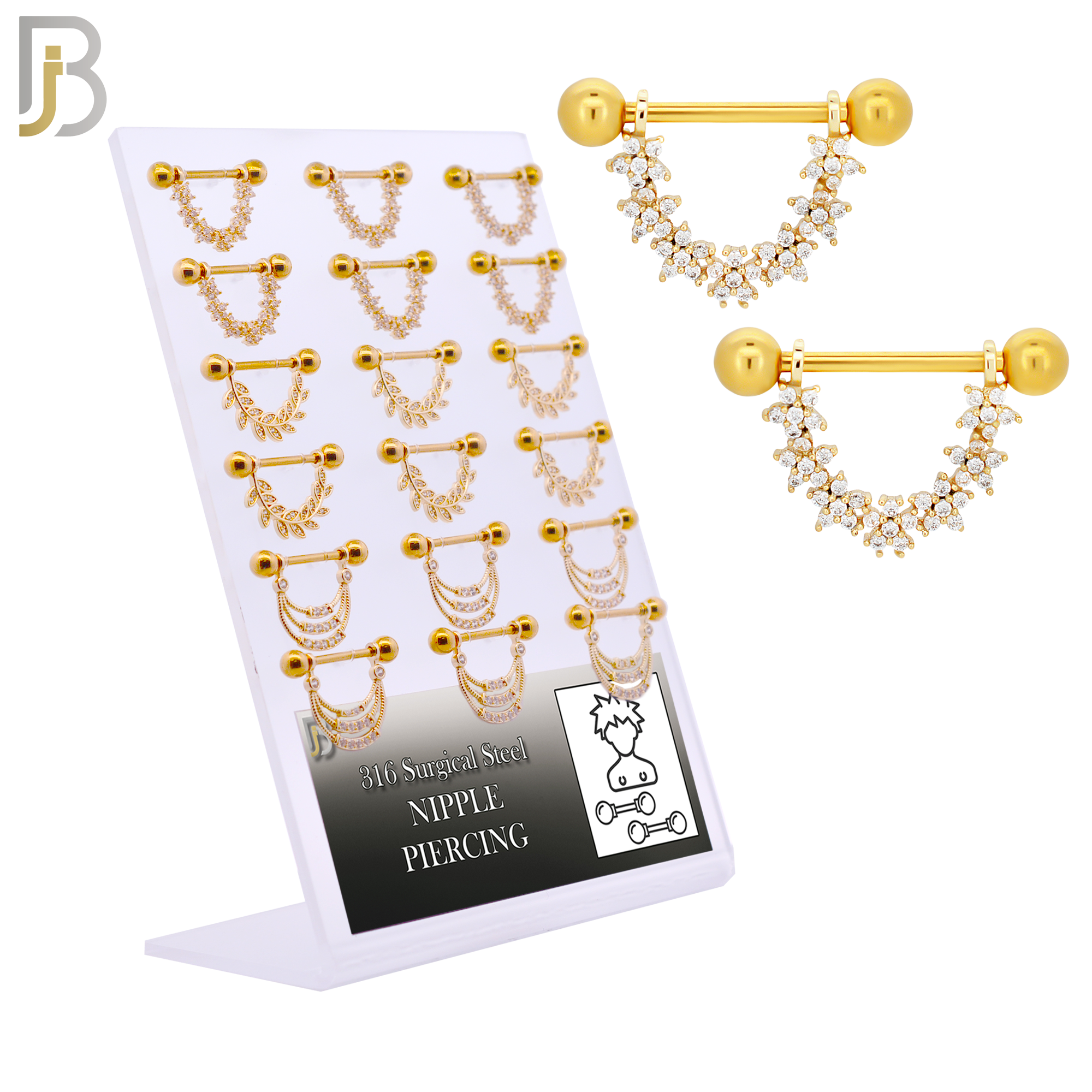 - PK-NP27 - 316L Surgical Steel Three (3) Different Design Nipple Shields - Pack of 9 Pairs