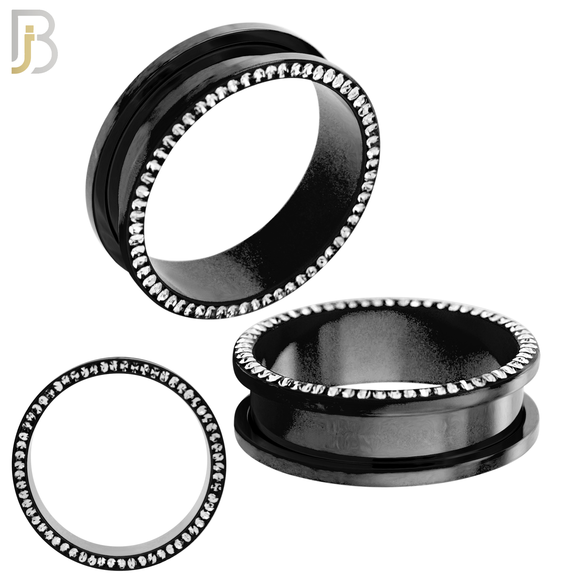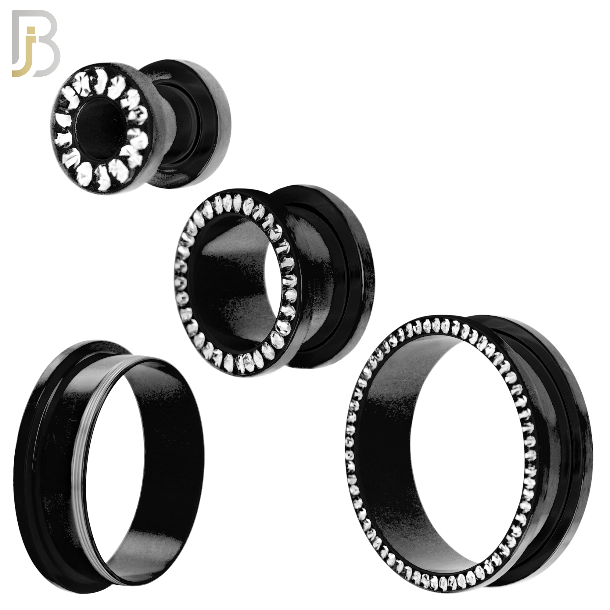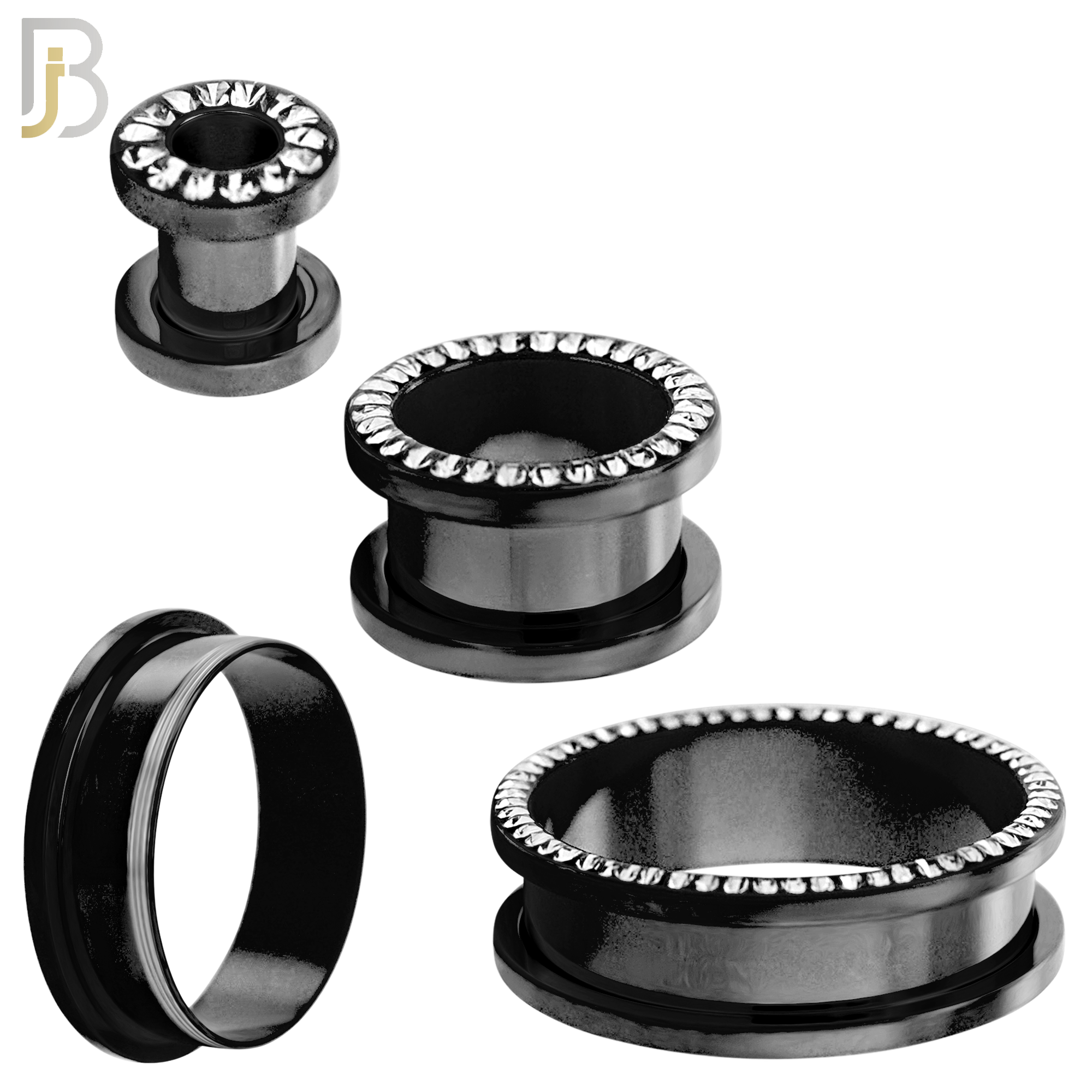 Crafted from 316L Stainless Steel, these plugs offer excellent durability, long‑lasting shine, and resistance to tarnish. The black plating enhances the modern aesthetic while maintaining the metal’s hypoallergenic properties—perfect for sensitive skin. Sold as a pair, they’re an ideal choice for anyone looking to elevate their body‑jewelry collection with something bold and eye‑catching.