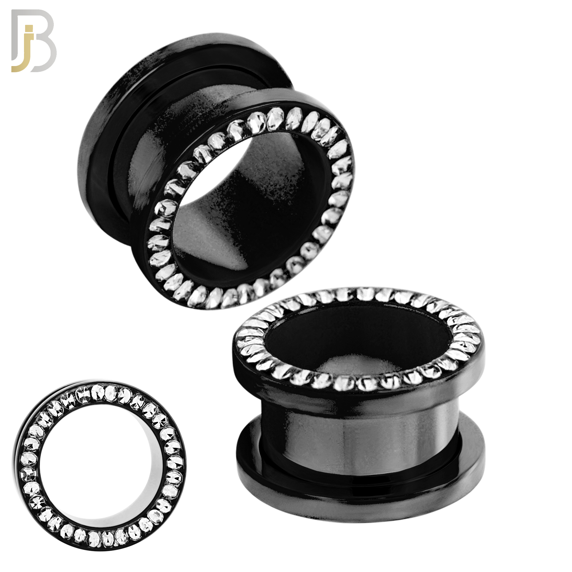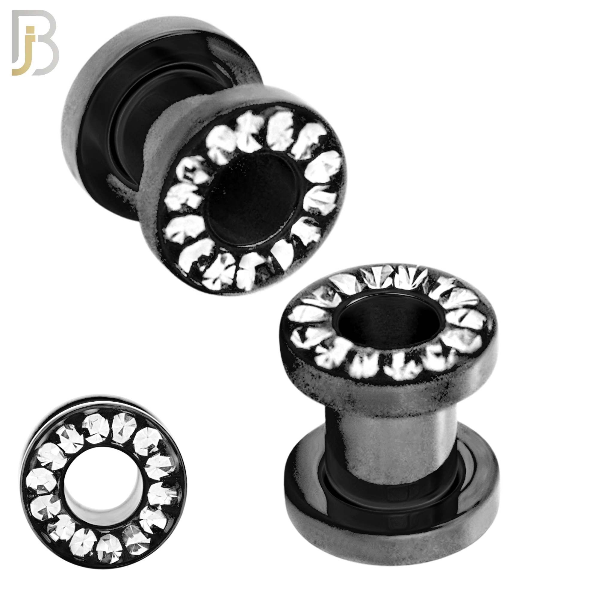 - PL05K - Black Plated Surgical Steel Oil Coating Zircon Screw On Plugs Sold as Pair