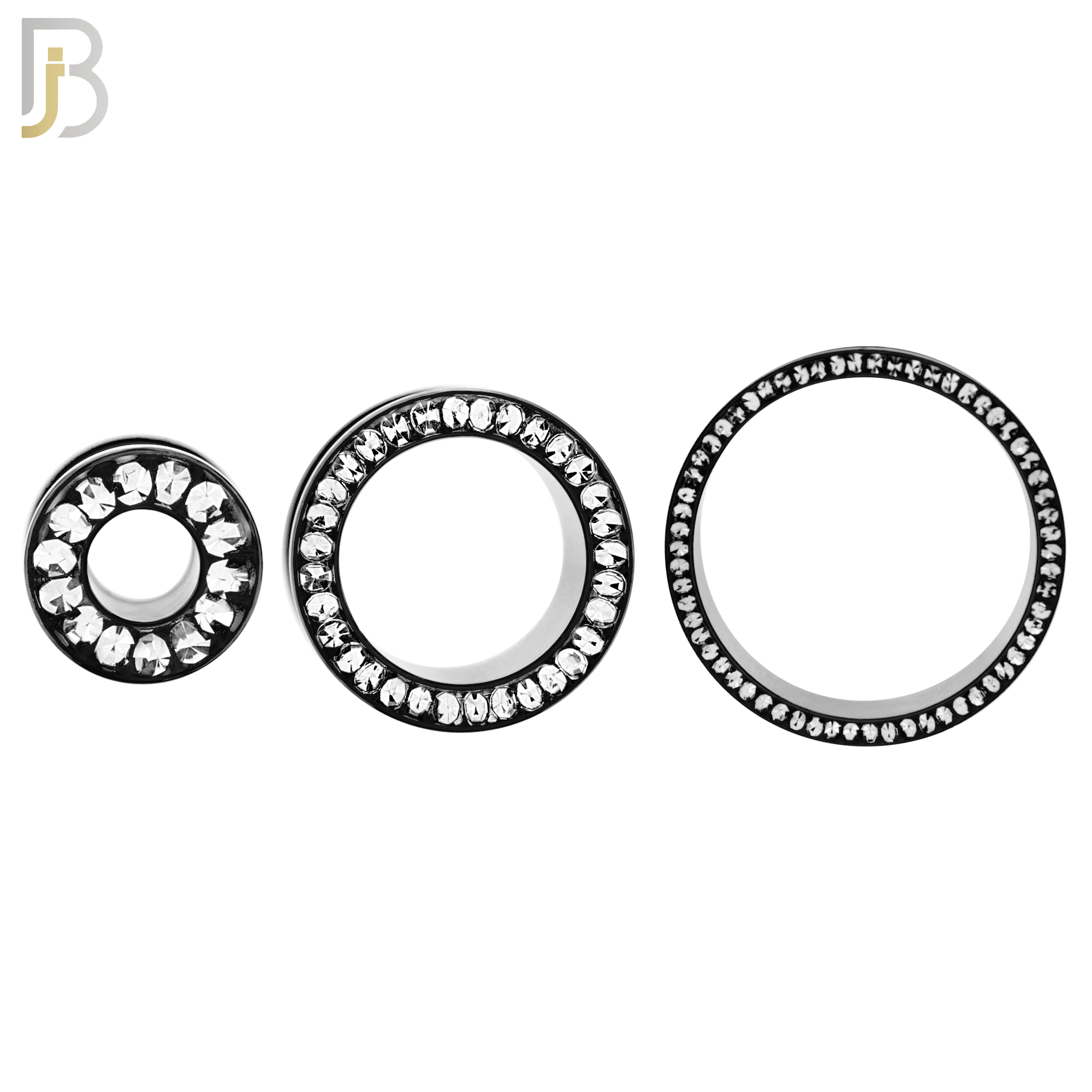 PL05K - Black Plated Surgical Steel Oil Coating Zircon Screw On Plugs Sold as Pair