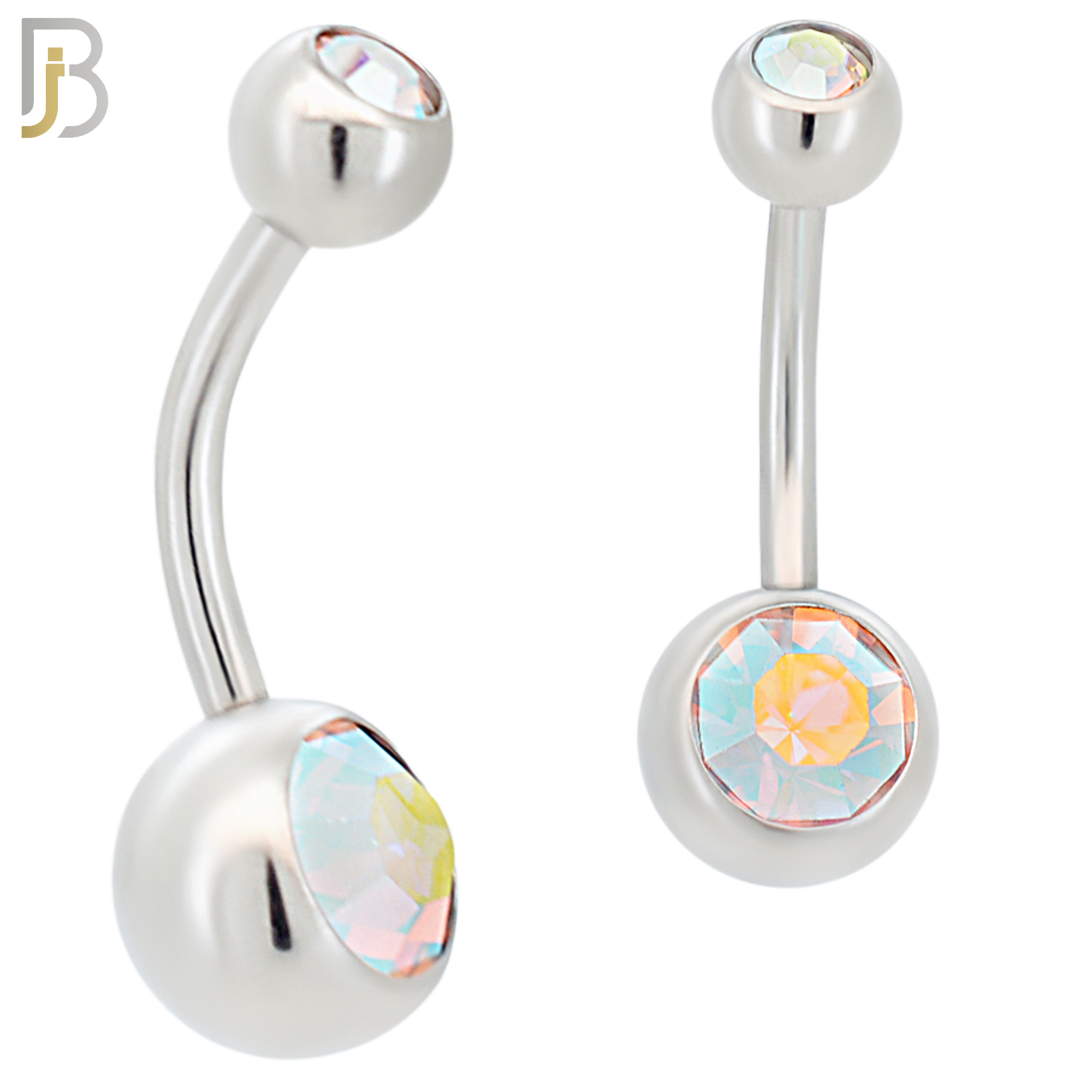 Aurora Borealis Double Gem Bezel Zircon Banana Belly Ring – 316L Surgical Steel