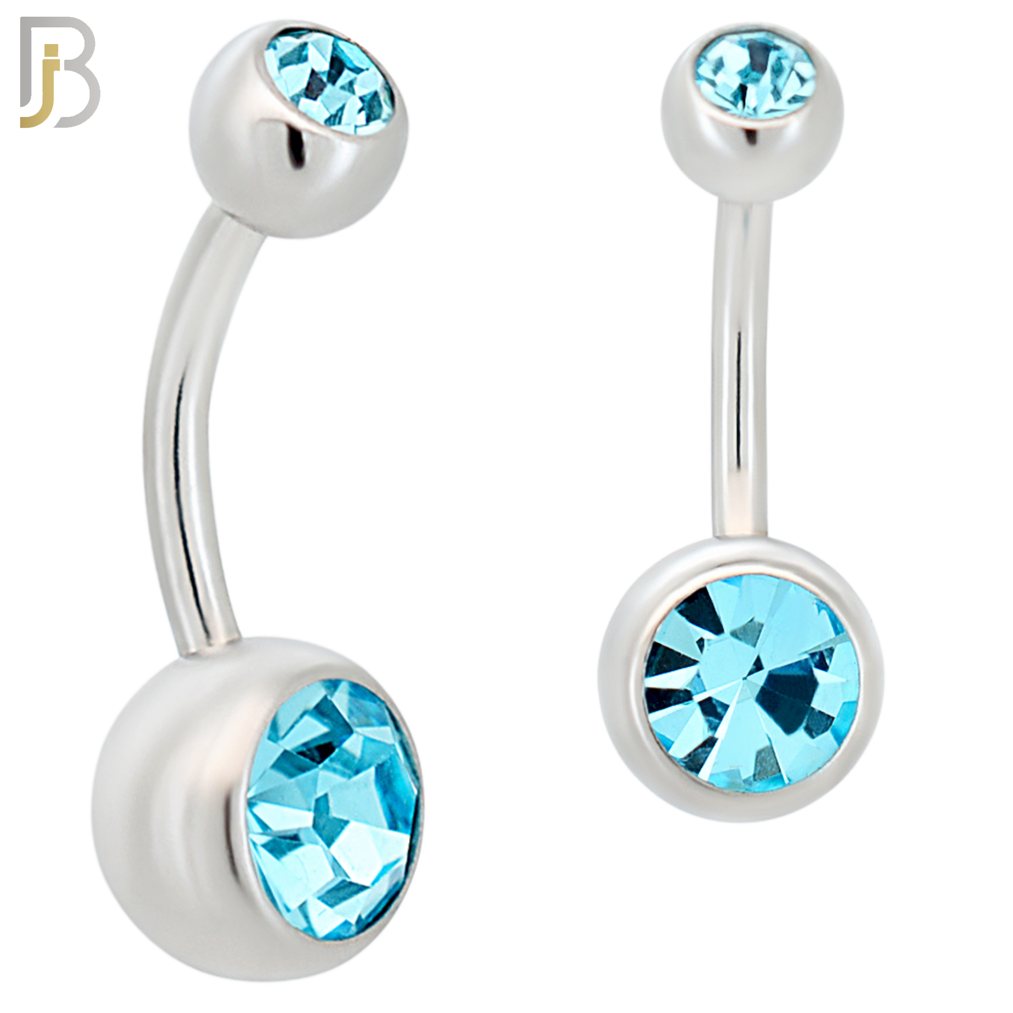- NB01SAQ - 316L Stainless Steel Aquamarine Double Gem Bezel Zircon Plain Banana Belly Navel Ring (Pack of 6)