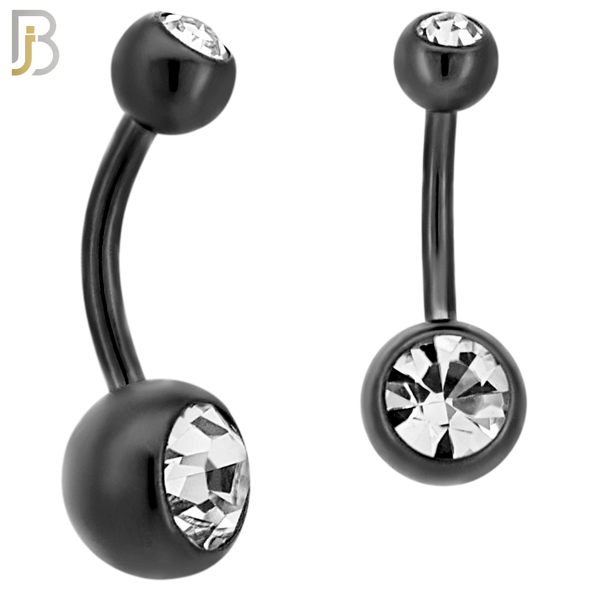 - NB01KC - 316L Stainless Steel Black Plated Clear Double Gem Bezel Zircon Plain Banana Belly Navel Ring (Pack of 6)