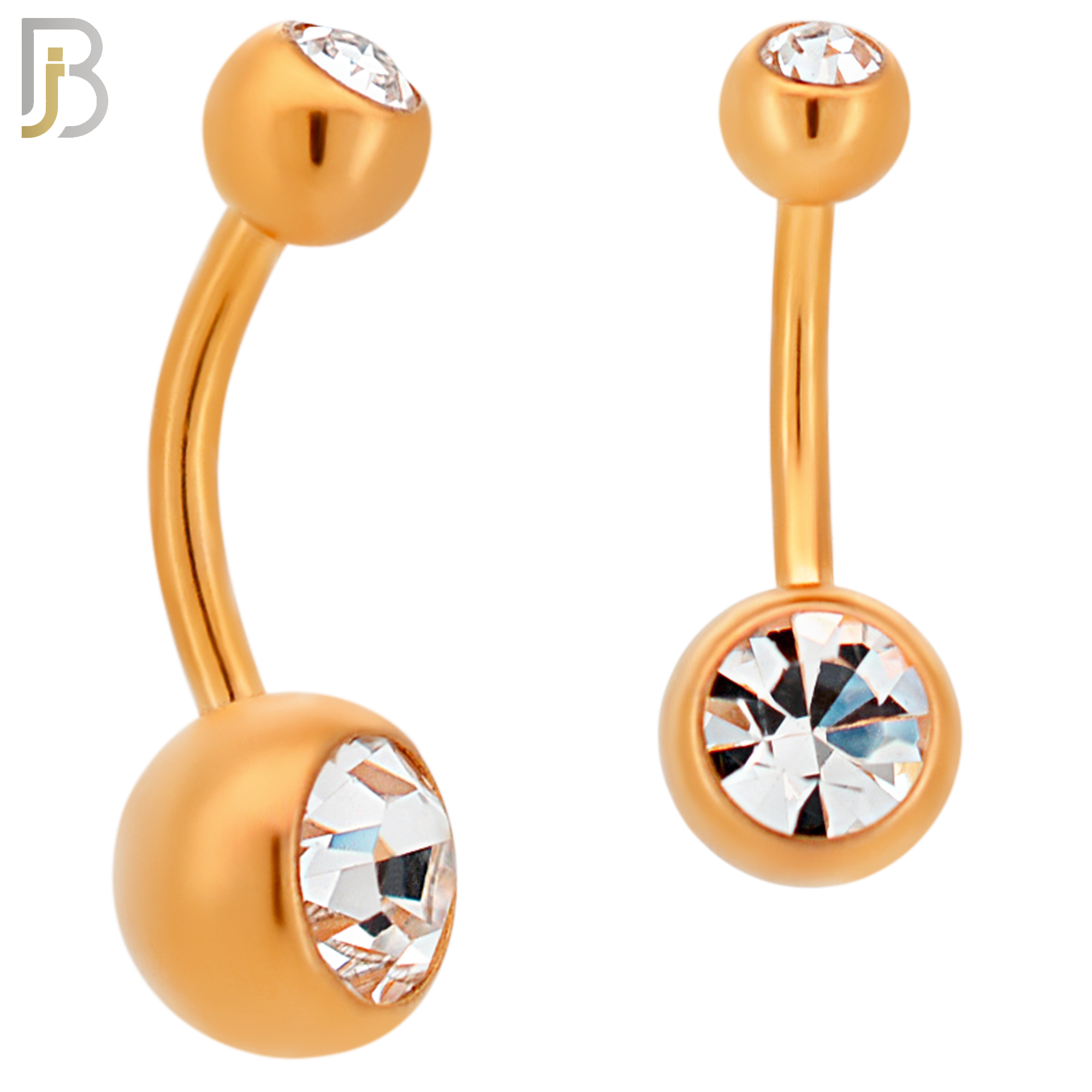 - NB01RC - 316L Stainless Steel Rose Gold Plated Clear Double Gem Bezel Zircon Plain Banana Belly Navel Ring (Pack of 6)