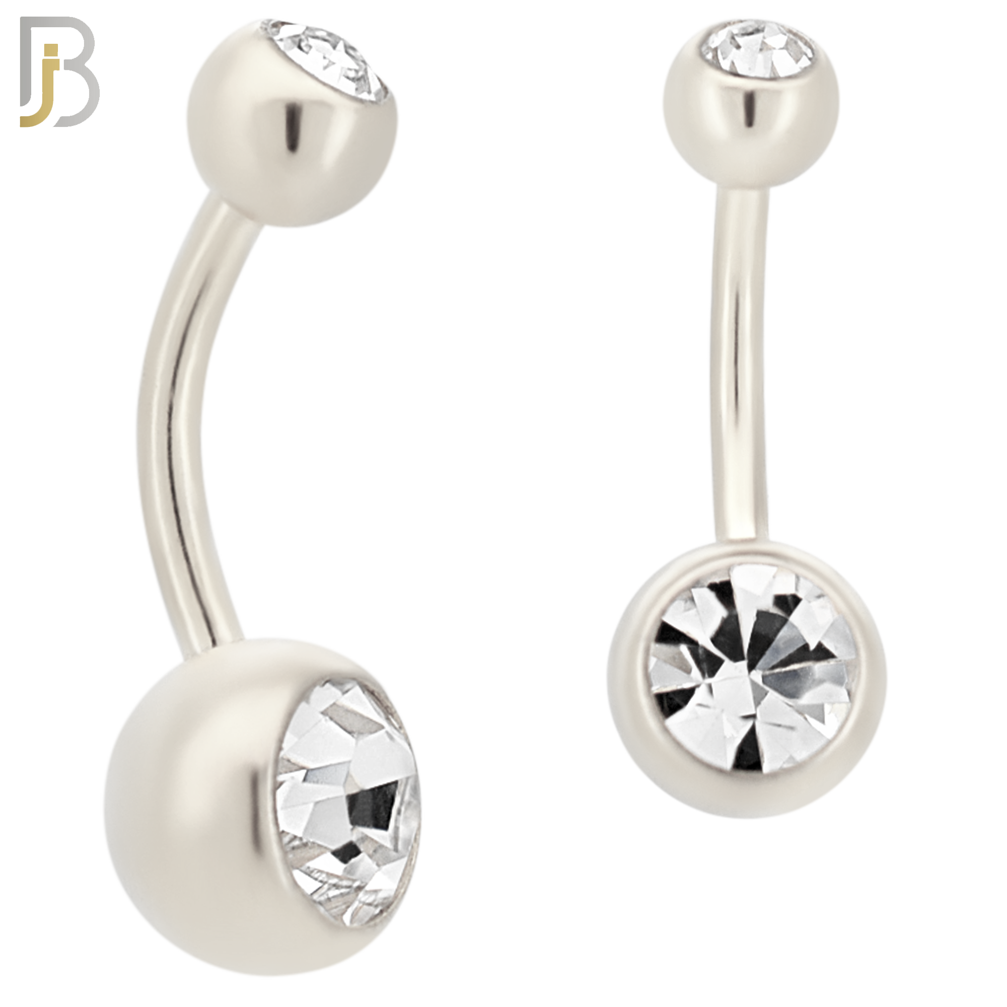 - NB01SC - 316L Stainless Steel Clear Double Gem Bezel Zircon Plain Banana Belly Navel Ring (Pack of 6)