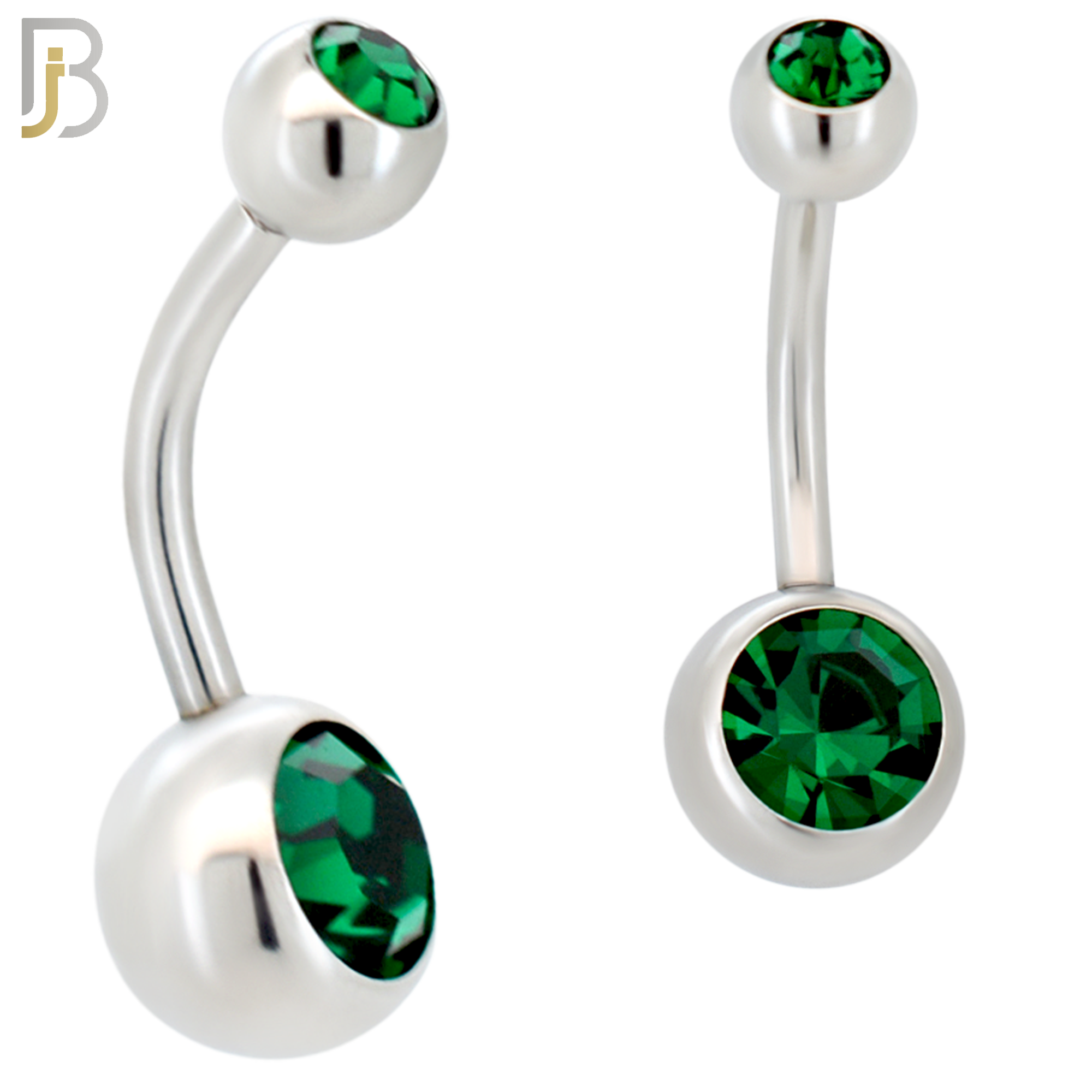 - NB01SE - 316L Stainless Steel Emerald Double Gem Bezel Zircon Plain Banana Belly Navel Ring (Pack of 6)