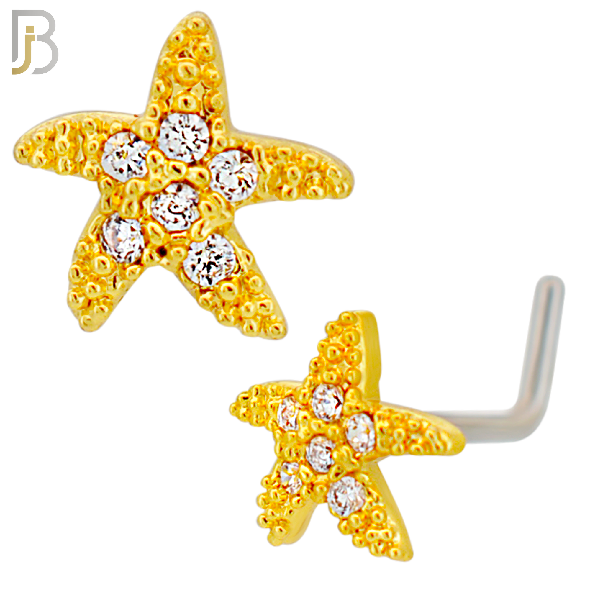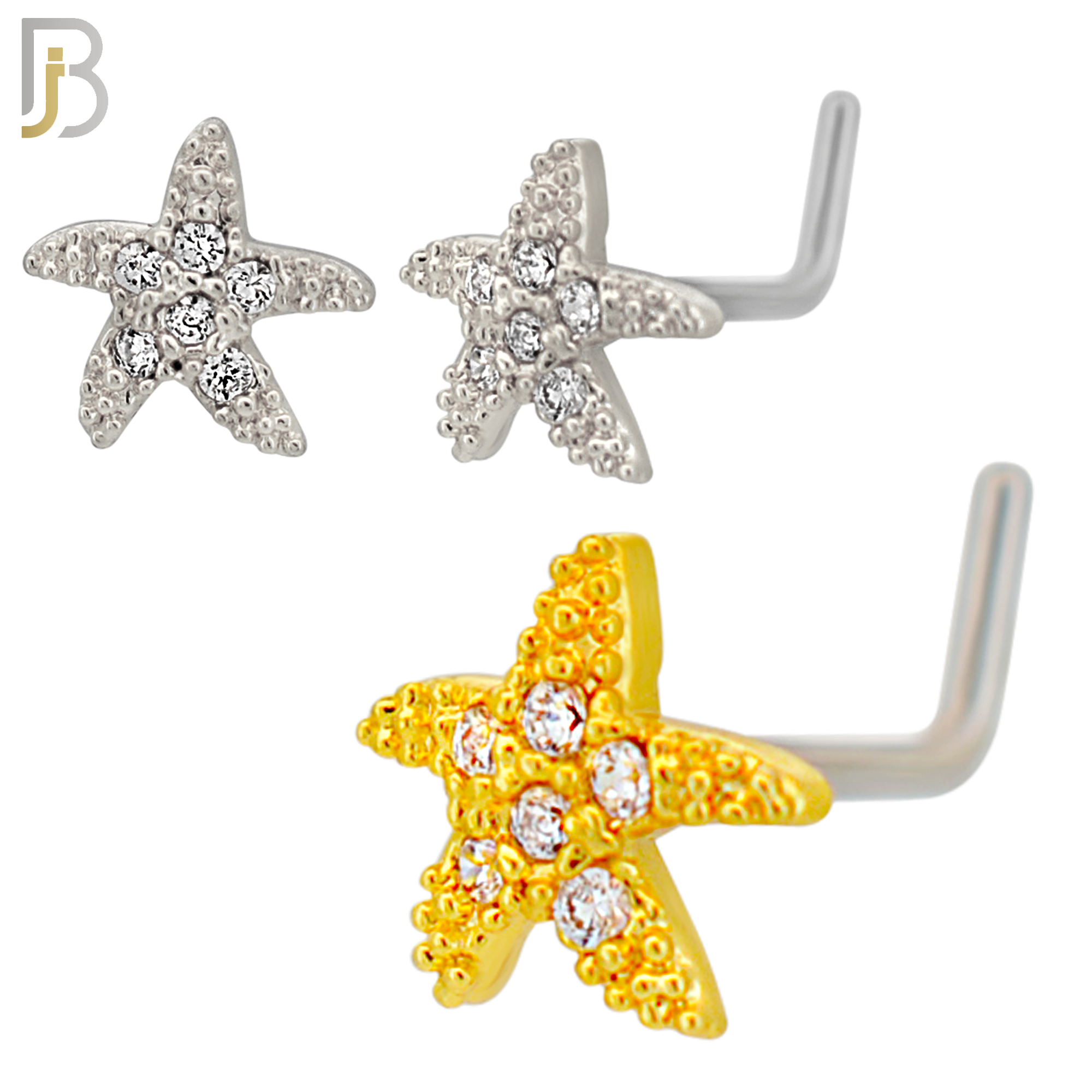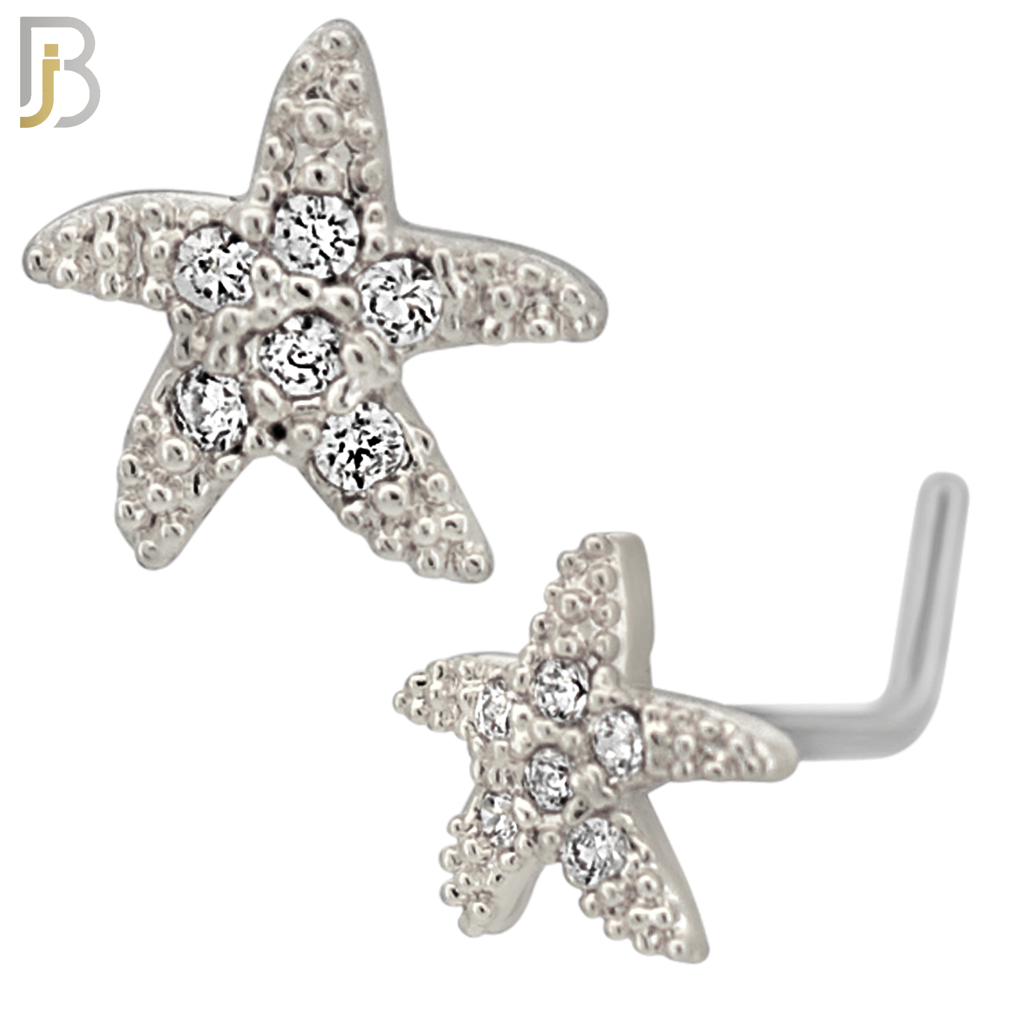 - NR129L - 20g - 316L Surgical Steel Lshaped Nose Rings Starfish with Cubic Zirconia