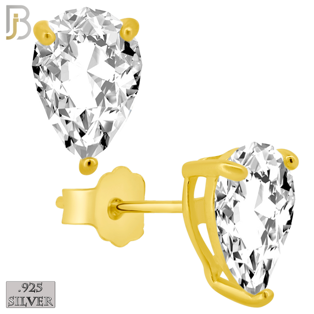 925-ES318-GC - Gold Plated .925 Sterling Silver Push Back Pear Shaped Zircon Stud Earrings