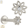 14-LB52 - 14k Gold Hollow Flower Labret with Round Zircon Center