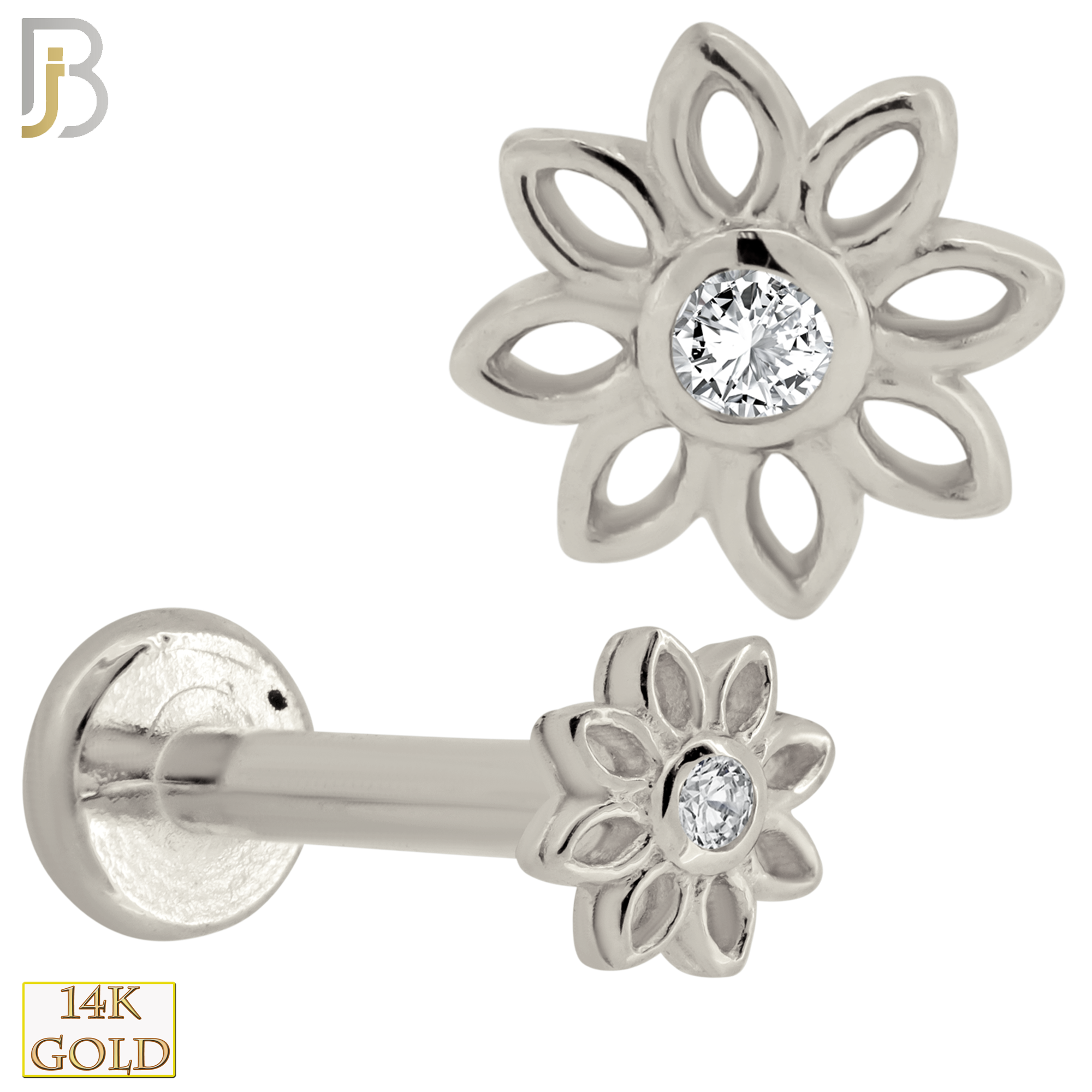- 14-LB52 - 14k Gold Hollow Flower Labret with Round Zircon Center